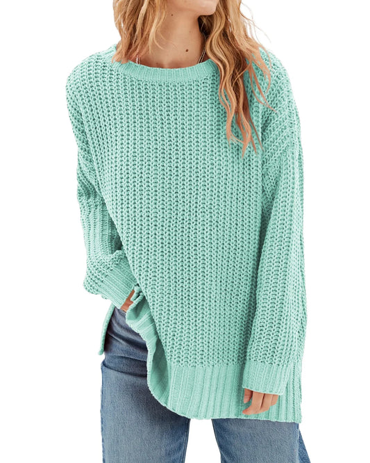 Womens Solid Knit Sweaters Oversized Crew Neck Long Sleeve Slouchy Ribbed Knitwear