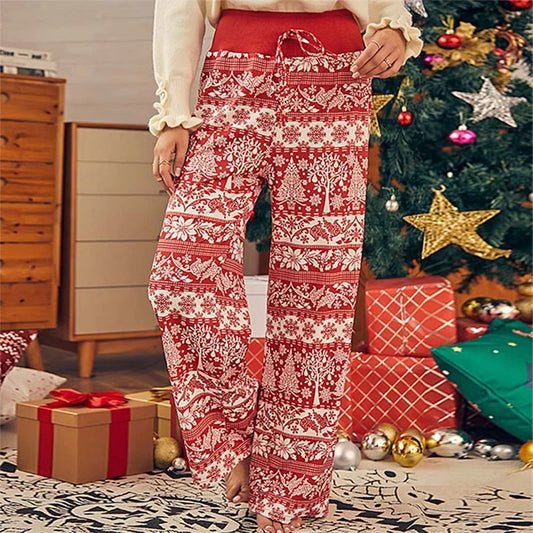 Women’s Christmas Pajama Pants Elastic High Waist Wide Leg Lounge Pants Drawstring Trousers