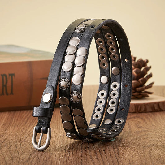 1CM Luxury Skirt Dress Rivet Belt Genuine Leather Punk Decoration Thin Strap