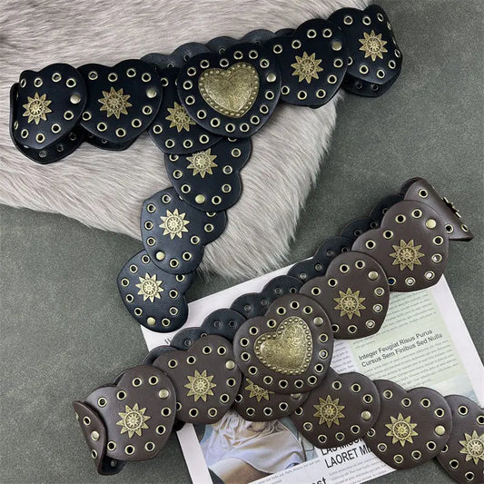 American retro Western cowboy style heart belt decoration street style fashion metal rivet belt width