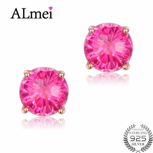 925 Sterling Silver 6ct Red Topaz Stud Earrings Natural Zircon