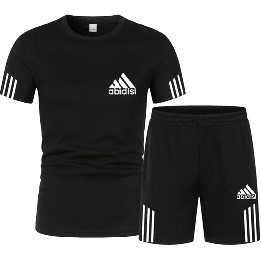 Summer Luxury Set Men's Short Sleeve Suit Fitness Fashion Casual Shorts Tracksuit Clothes for Mens T-shirt + Shorts 2-piece Set