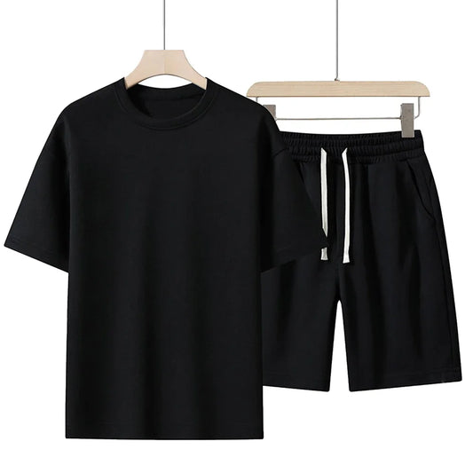 Men's Leisure Suit Summer New Fashion Brand Short Sleeve Shorts Suit Breathable Leisure Suit Draw Rope Solid Color Pattern Suit