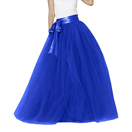 Women's Mesh Maxi Skirt Elastic High Waist Large Swing Long Skirt A Line Belt