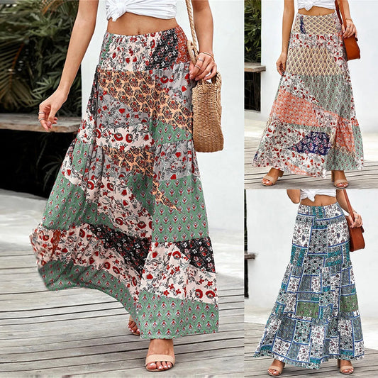 Bohemian Women Long Skirt Large Swing High Waist Floral Printing A-Line Skirt Women