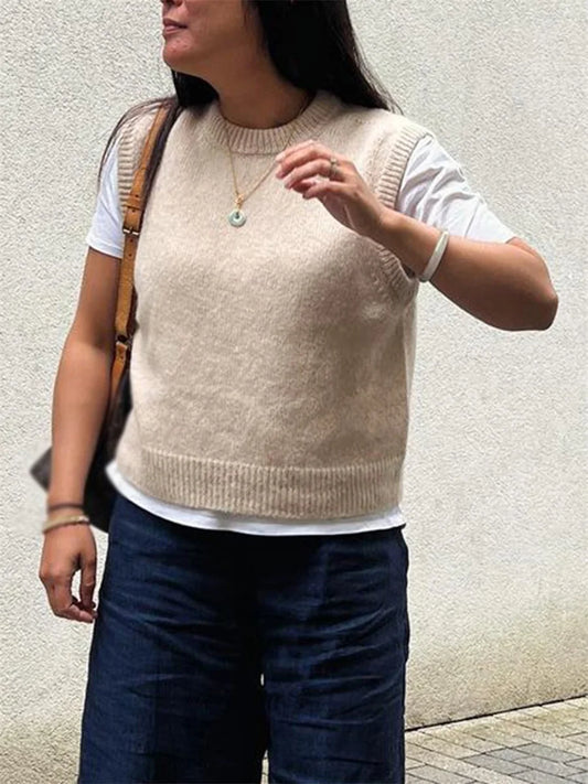 Women s Cozy Knitted Sleeveless Sweater Vest in Solid Color Perfect for Layering and Streetwear Fashion