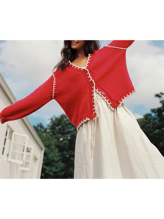 Women s Long Sleeve Knit Cardigan with Cherry Button Closure Cozy Fall Casual Jacket Sweater