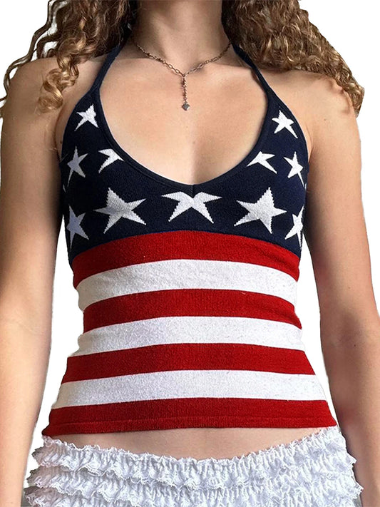 Women s Patriotic Sleeveless Tank Tops Fit American Flag Print Halter Neck Vest for 4th of July Celebration and Summer