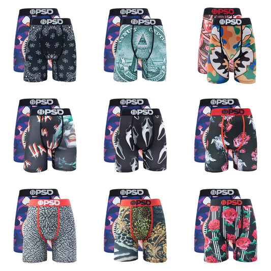 OZPSD 2Pcs Men Boxer Briefs Breathable Mens Underpants Men's Panties Plus Size L-2XL Print Mens Swimming Underwear Sexy Boxers