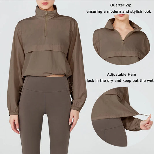 Women's Athletic Jacket Lightweight Quarter Zip Pullover For Golf Hiking Running Windbreaker Waterproof Jacket