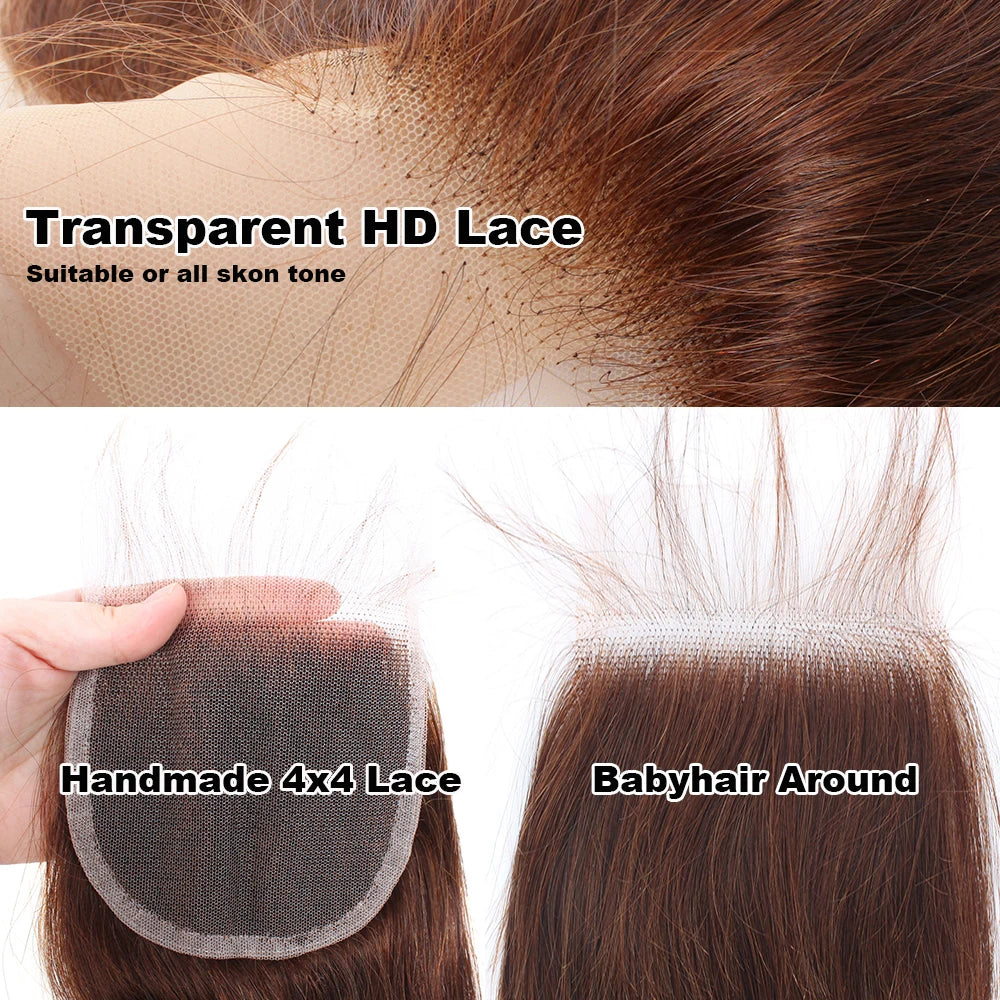 10A Brazilian Bundles with Closure Body Wave Bundles Human Hair With 4x4 Lace Closure Brown Blonde Colored 3/4 Weave Extensions