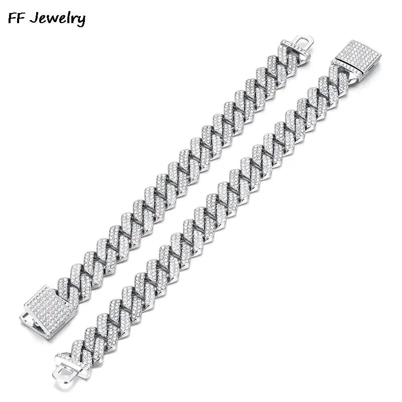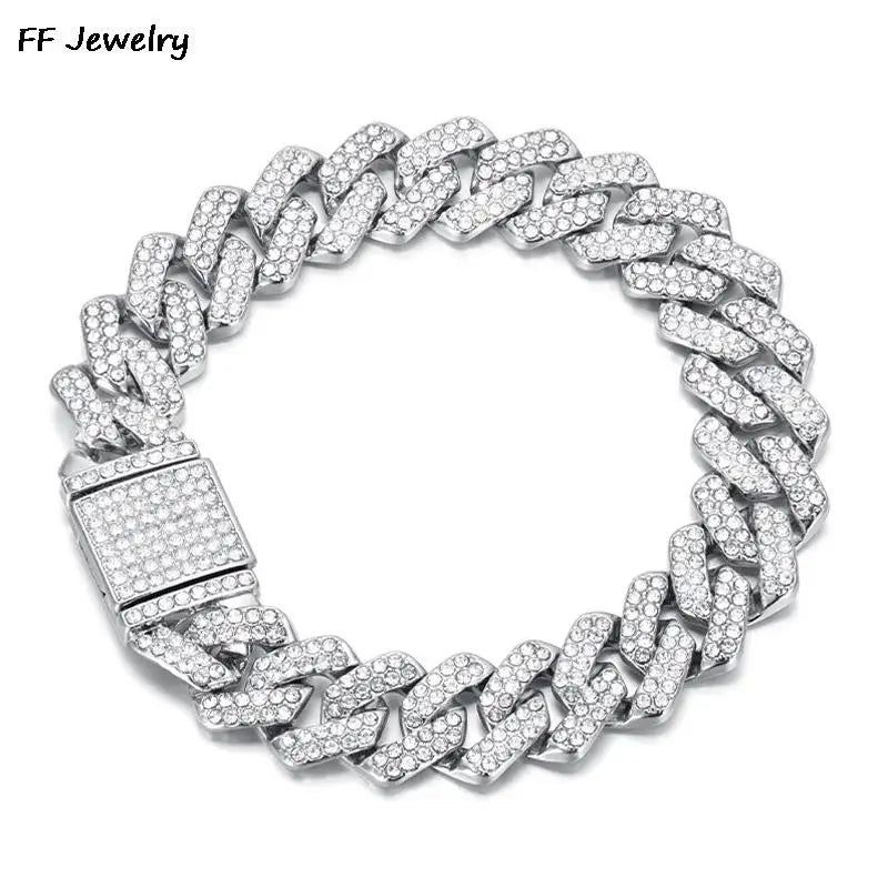 14mm Crystal Miami Iced Out Cuban Link Chain Bracelet For Men&Women Full Rhinestones Charms Jewelry Chain