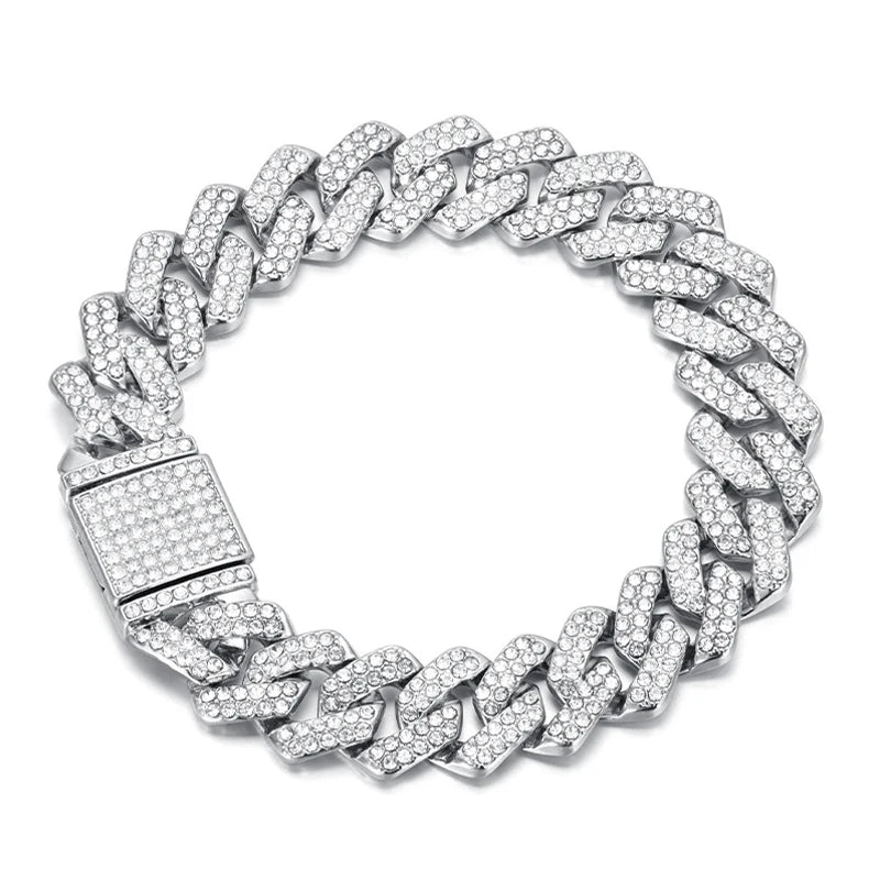 Turn heads with this 14mm Crystal Miami Iced Out Cuban Link Bracelet, designed for bold self-expression and standout style. Drenched in shimmering rhinestones, this unisex bracelet features a chunky criss-cross pattern and durable zinc alloy build. Whether you're elevating your streetwear look or adding bling to a night out, this hip-hop-inspired accessory brings high-impact shine and undeniable edge.