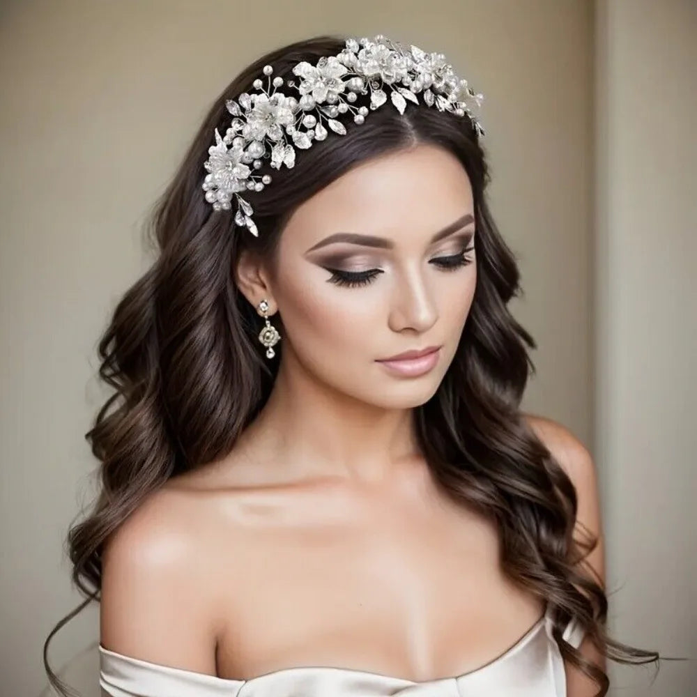 1Pcs Boho Style Handmade Faux Pearl Headwear Flower Shaped Hair Accessories