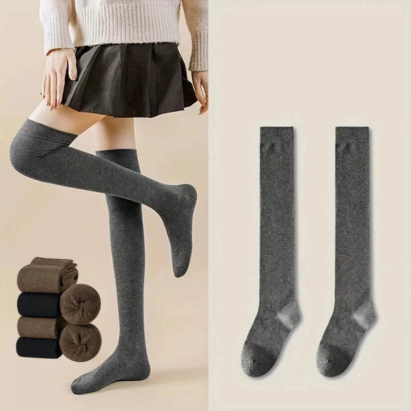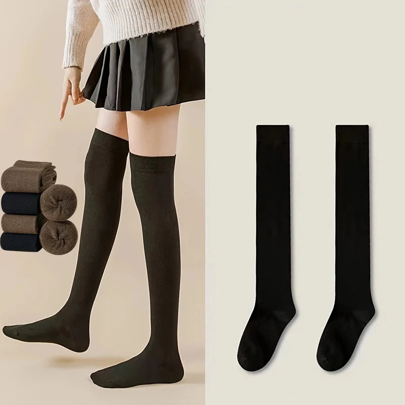 2-Pair Over-the-Knee Socks – Cozy & Stylish! Stay warm and stylish with this 2-pair set of over-the-knee socks! Made from soft and breathable polyester, these stockings provide a snug and comfortable fit, perfect for pairing with skirts, dresses, or cozy loungewear. Whether you're dressing up for a cute, casual look or need extra warmth, these versatile socks are a must-have!