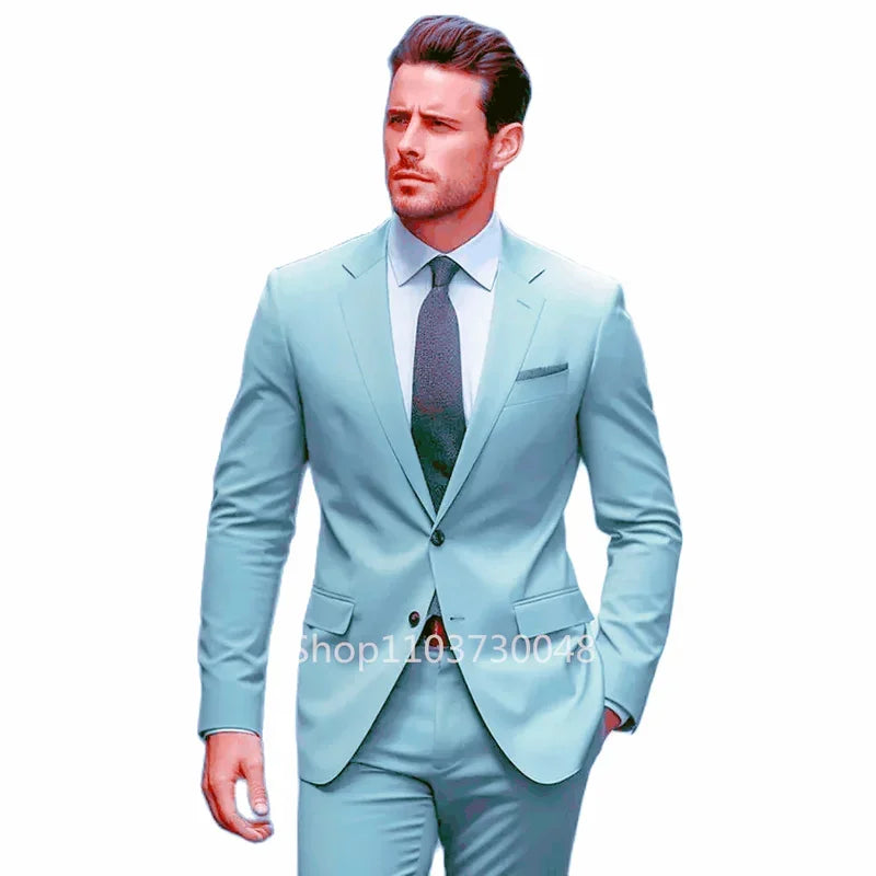 Perfect for daily wear across all seasons, this high-quality two-piece men's suit features a stylish notch lapel blazer and matching pants in a sleek slim fit. Designed with a single-breasted closure and crafted from premium materials, it offers both comfort and elegance. Ideal for weddings, business meetings, or groom attire, this formal tuxedo set ensures a sharp, fashionable look for any occasion.