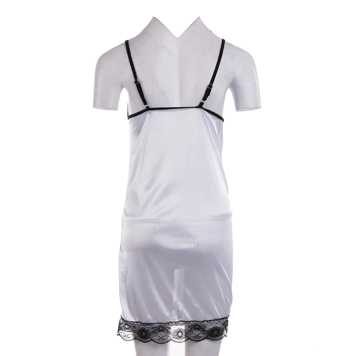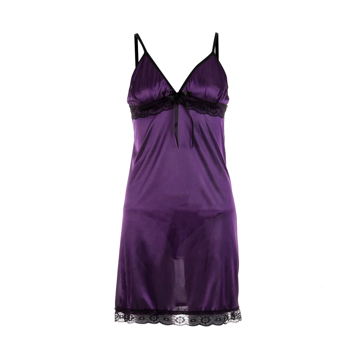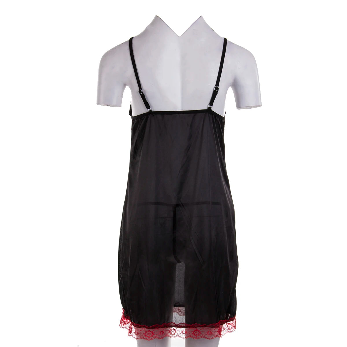 This knee-length nightgown with a V-neck collar and lace decoration is a luxurious and elegant piece for sleepwear. The silk material offers a soft, smooth texture, while the sleeveless design keeps it lightweight and breathable. The addition of thong panties makes this set both chic and seductive, perfect for a special occasion or simply when you want to feel pampered.
