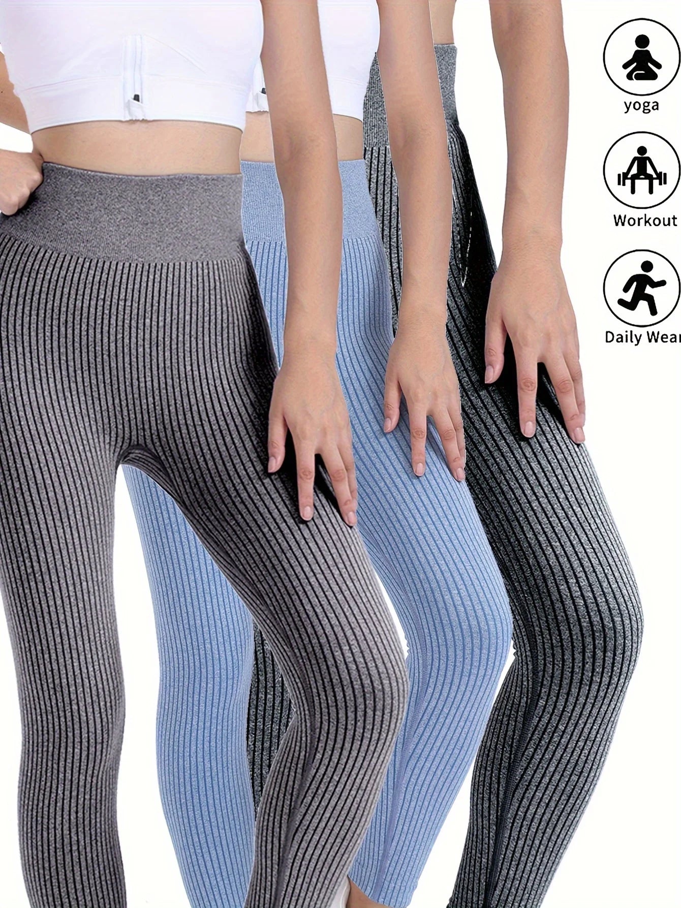 3 Pack US Women's Tummy Control High Waist Soft Workout Leggings Ribbed Seamless Workout Athletic Exercise Leggings