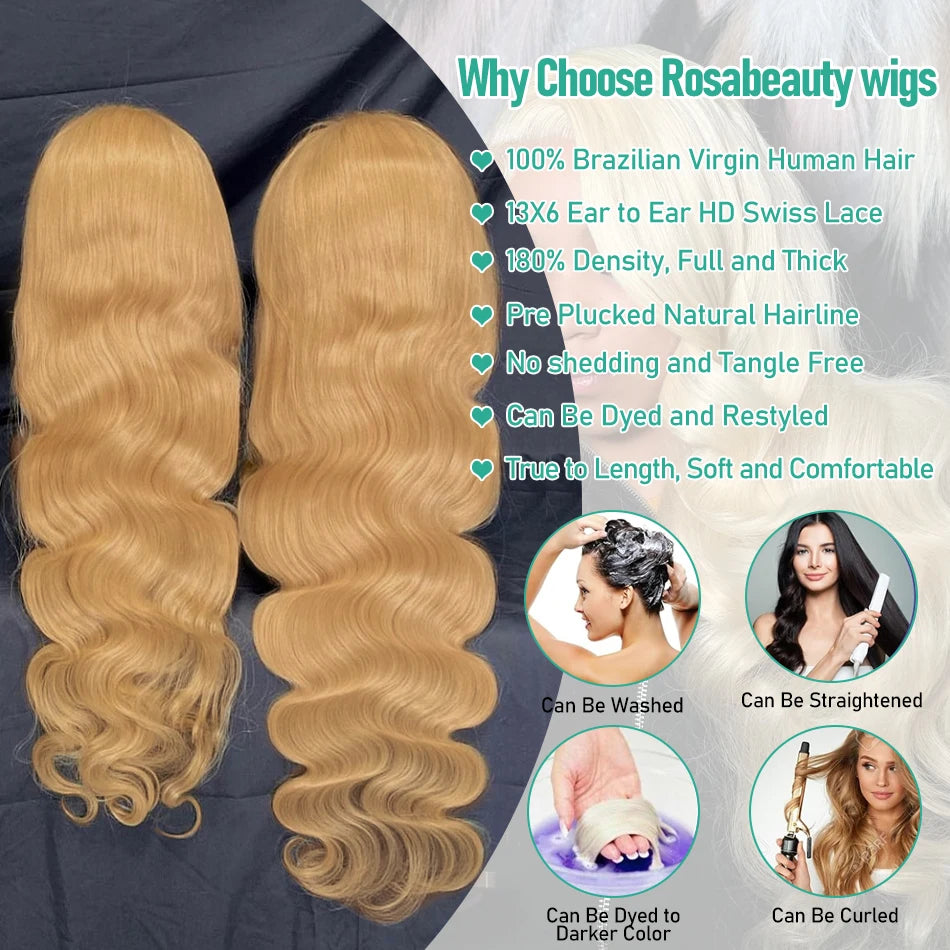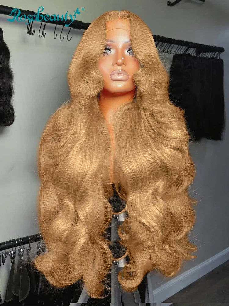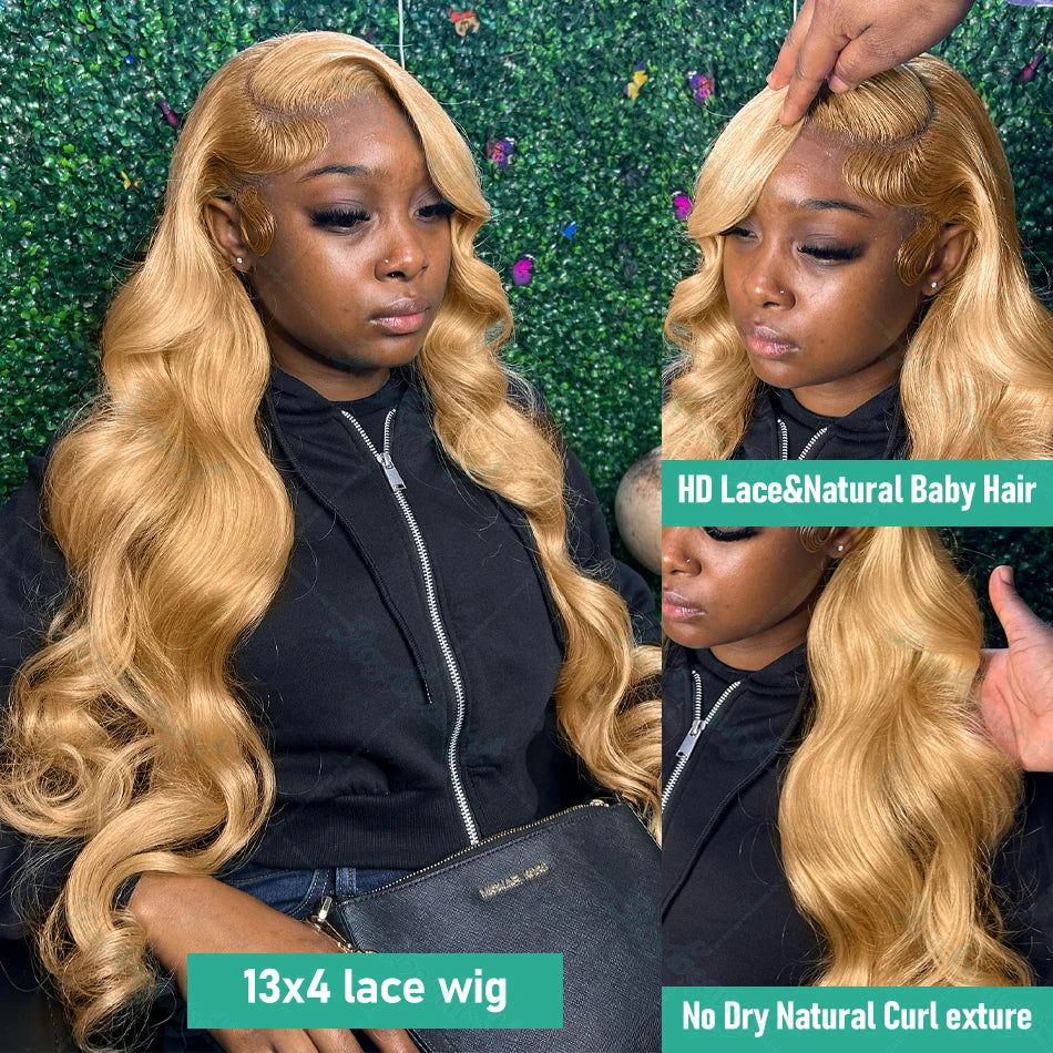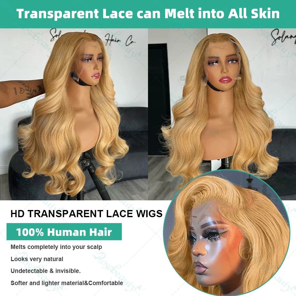 30 34 Inch #27 Honey Blonde Body Wave Wig Brazilian 13x4 Lace Front Human Hair 13x6 HD Transparent Lace