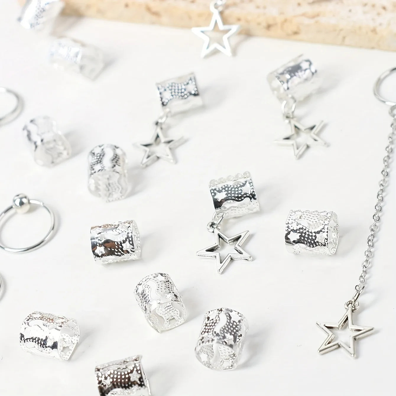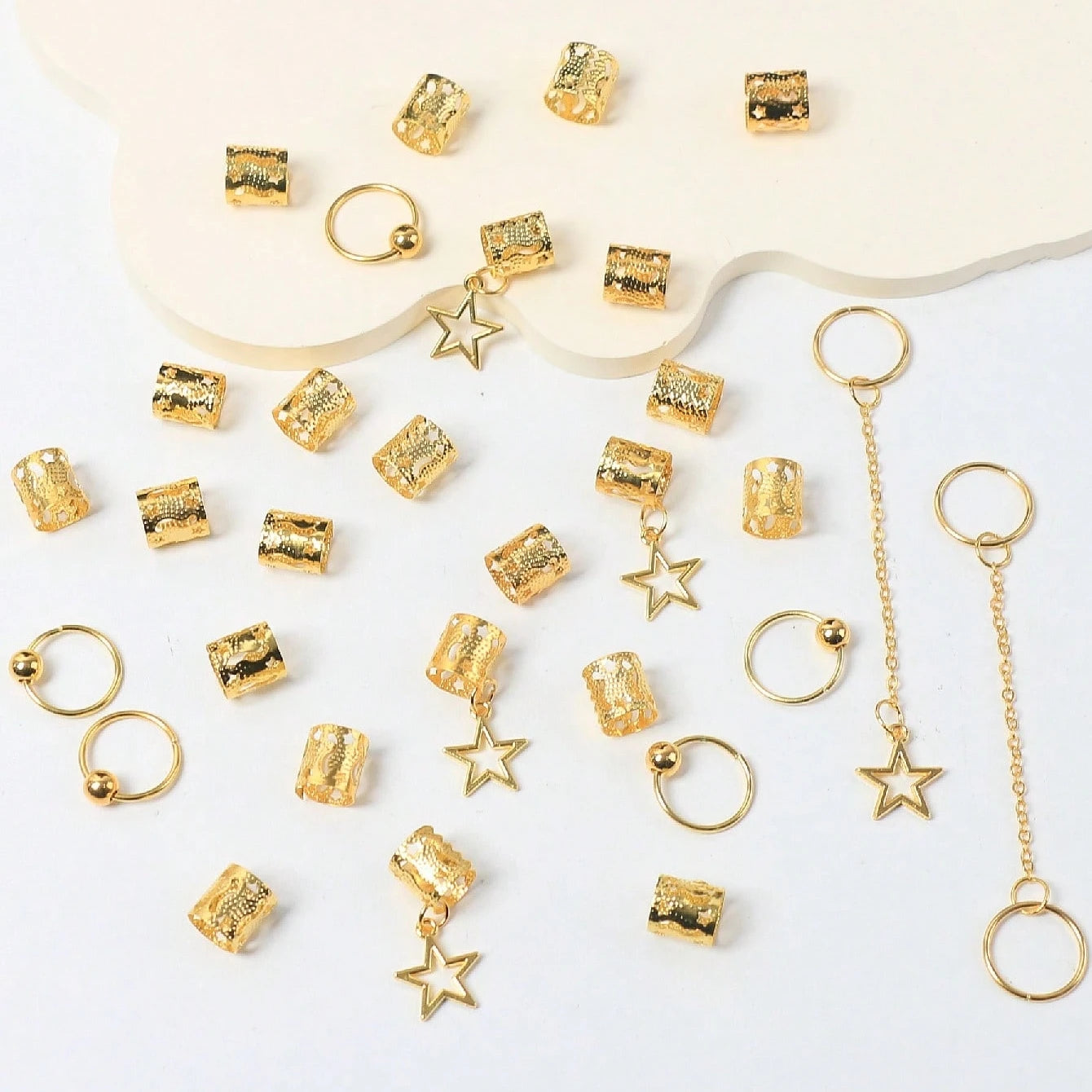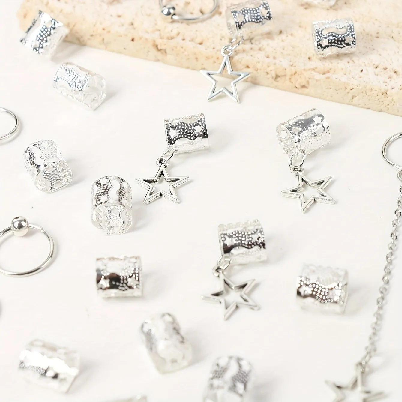 Enhance your braided hairstyles with this 32-piece set of star dreadlock hair cuffs and braid decorations, designed especially for women. Made from durable alloy in a sleek geometric pattern, these stylish barrettes add a touch of sparkle and personality to any look—perfect for festivals, casual outings, or creative hair styling.