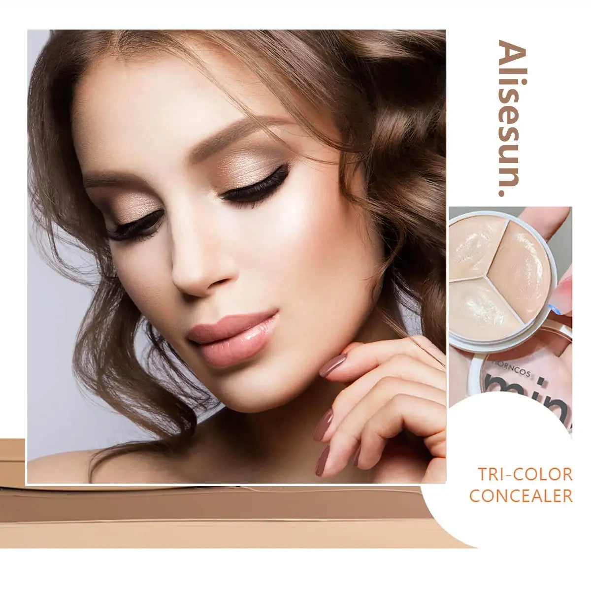 FULL COVERAGE & LONG-LASTING: Our waterproof full coverage concealer ensures that the concealer stays in place all day and doesn't require frequent touch-ups. The multi-coverage effect provides three colors in one compact pot, allowing users to achieve a semi-matte finish and conceal various skin imperfections.