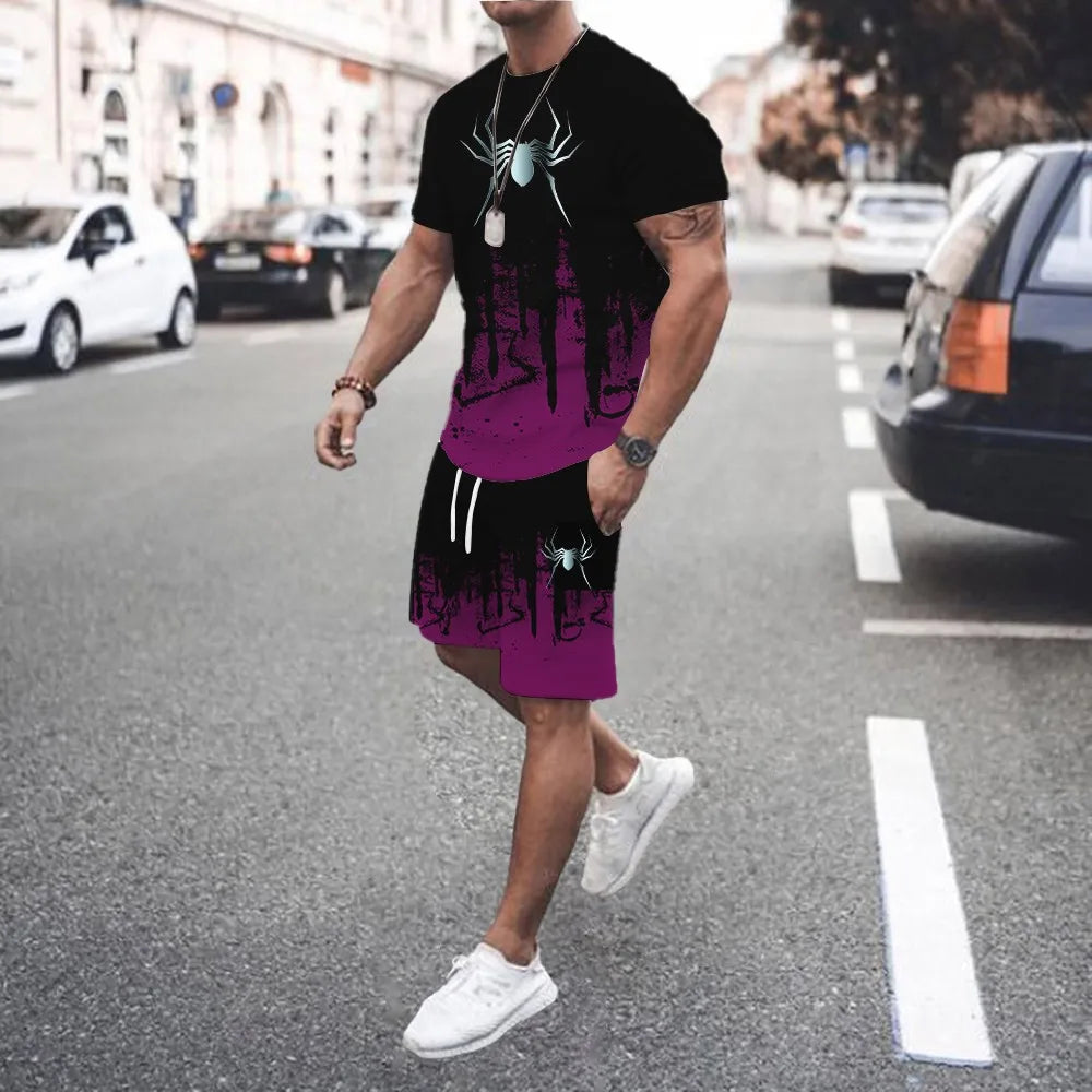 Add a bold touch to your off-duty look with this 3D printed men’s casual luxury gradient set, perfect for shopping or relaxing in style. This two-piece summer outfit features a vibrant short-sleeve O-neck T-shirt and coordinating drawstring shorts with functional pockets. Made from lightweight knit polyester, it offers breathable comfort and eye-catching design—ideal for turning heads while staying cool and comfortable.
