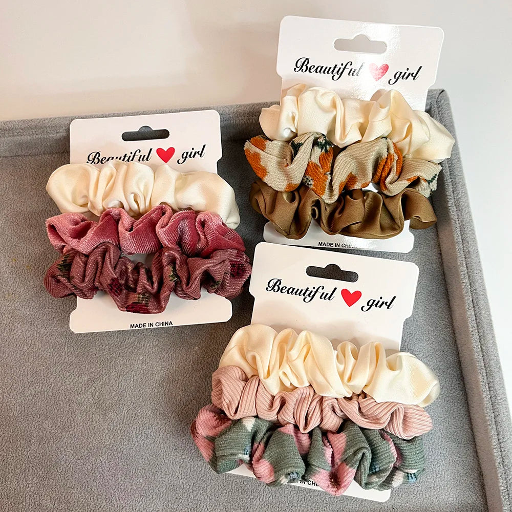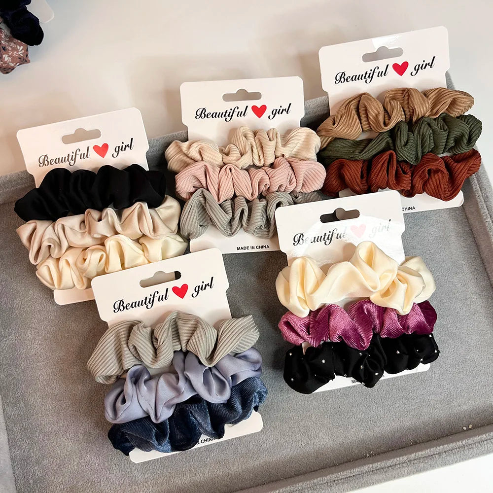 3PCS/Set Corduroy Knitted Small Scrunchies Elastic Hair Ties Women Girls Satin Ponytail Rubber Hair Bands Rope Hair Accessories