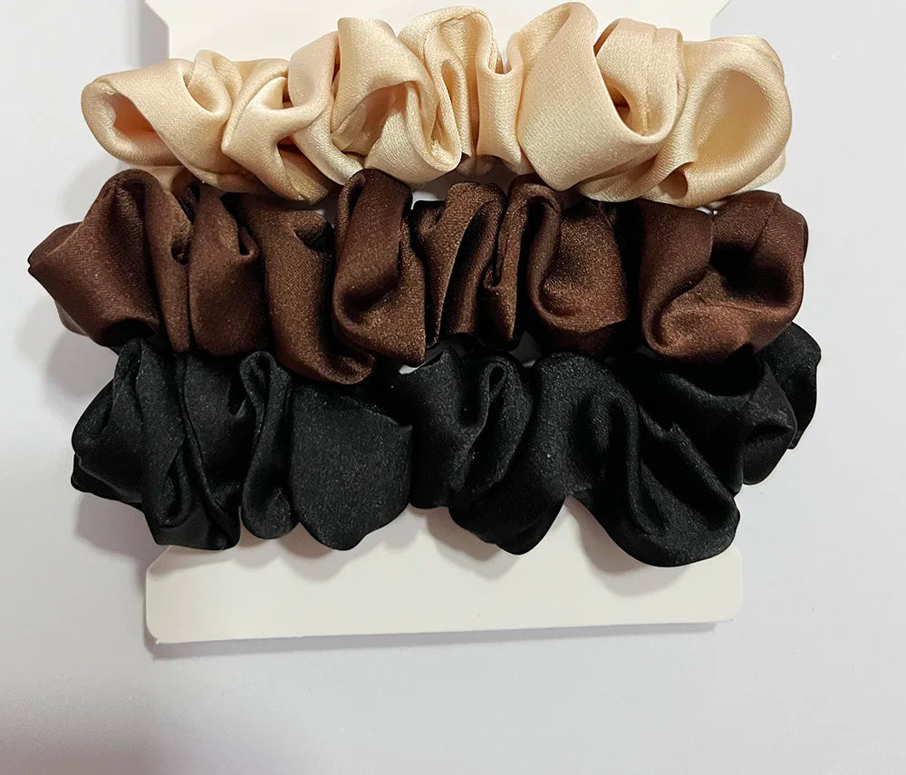Elevate your hair game with this set of 3 stylish scrunchies. Made from corduroy knitted fabric and elastic rubber, these small scrunchies are perfect for ponytails, buns, or adding a fun twist to any hairstyle. Available in trendy satin and print patterns, these hair ties come in a set of three, offering a variety of looks. Perfect for women and girls, these fashion-forward accessories are both practical and decorative.