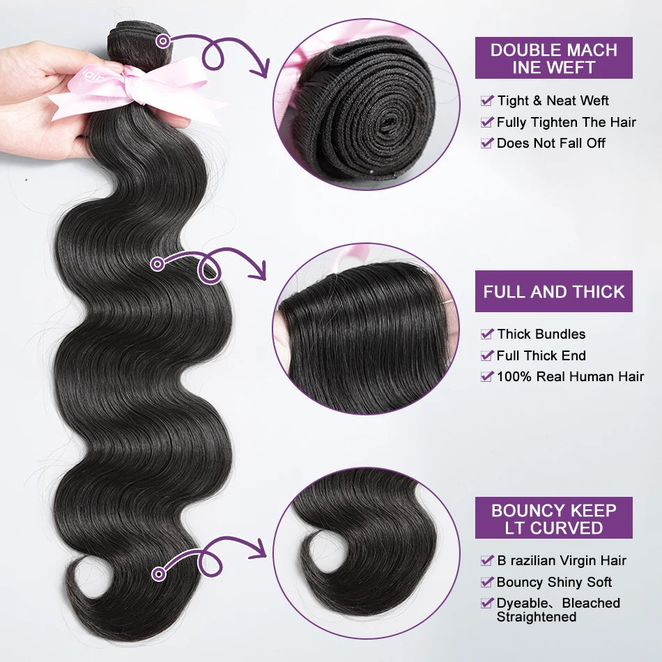 Brazilian virgin body wave weave extensions are a fantastic way to add volume and texture to your hair! The body wave texture gives it a natural, effortless look, while the high-quality virgin hair ensures longevity and a soft feel. The 40%-45% longest hair proportion means you’ll get a great blend of length and fullness.