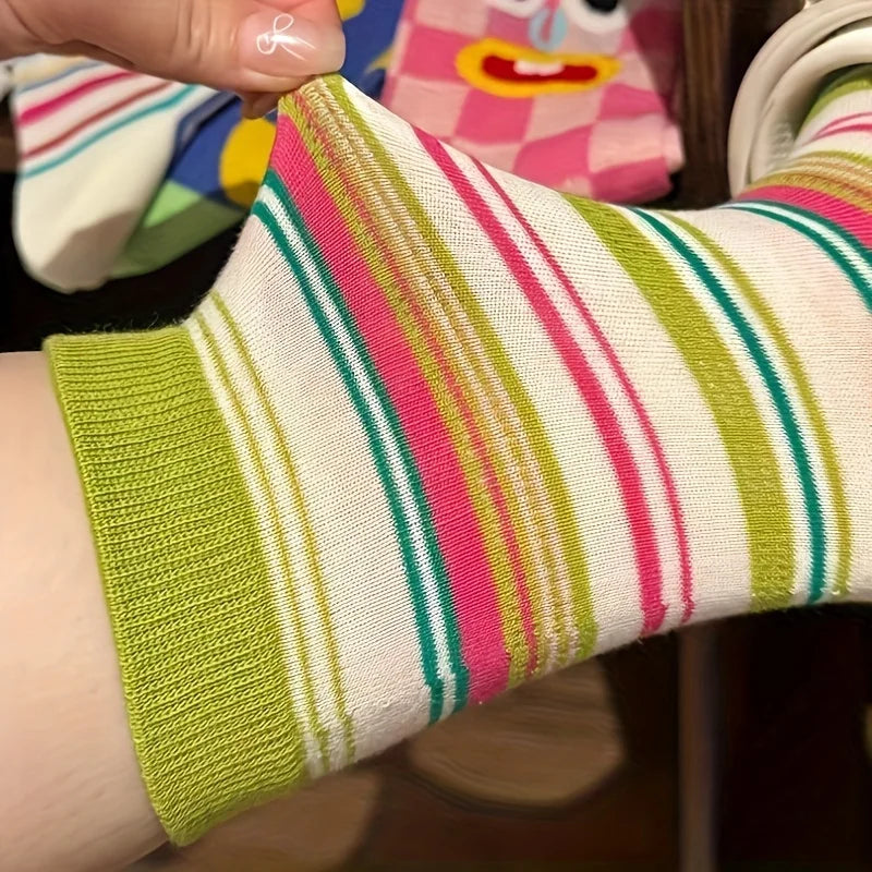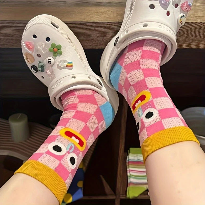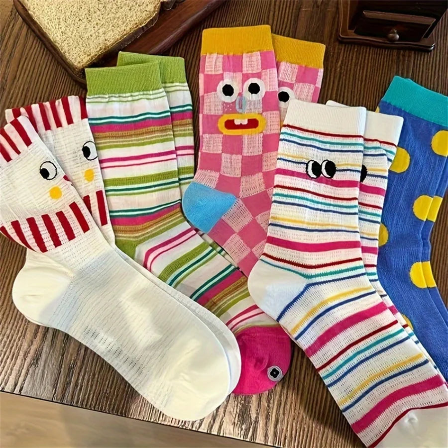 5 Pairs Of Colorful Cartoon Socks Quirky And Cute Mid-calf Socks, Comfortable And Breathable For Daily Work