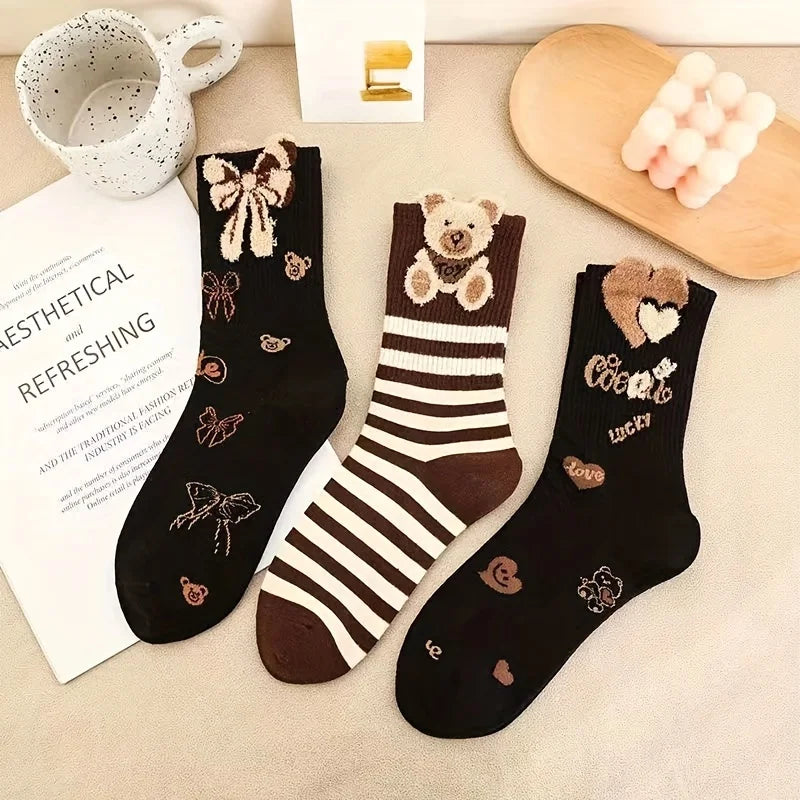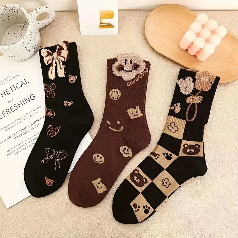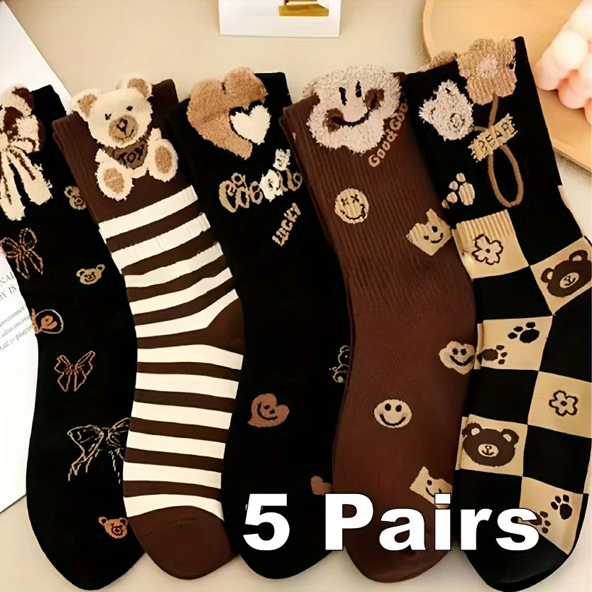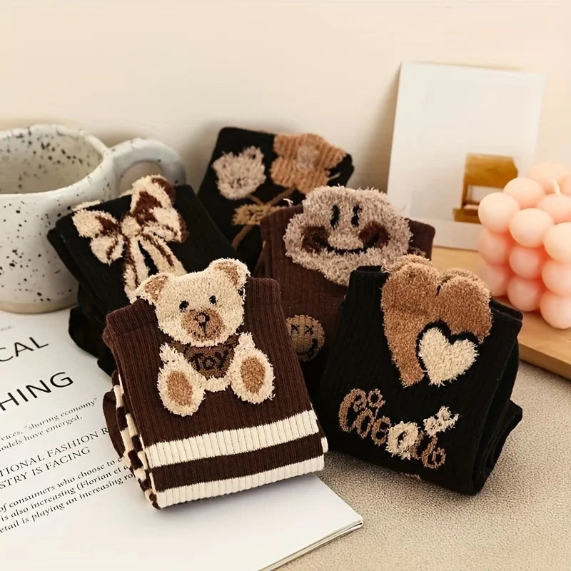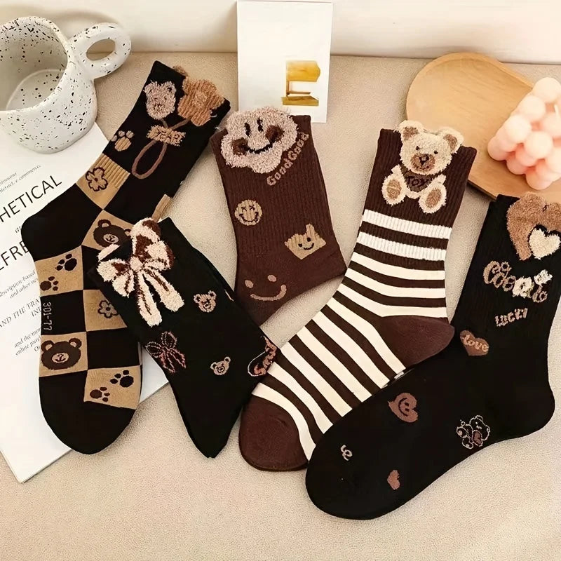 5-Pair Latte-Themed Multi-Colored Socks! Step into cozy comfort with this latte-inspired sock collection! Featuring a warm and stylish color palette, these thick-knit socks are perfect for chilly days, keeping your feet snug while adding a trendy touch to your outfit.