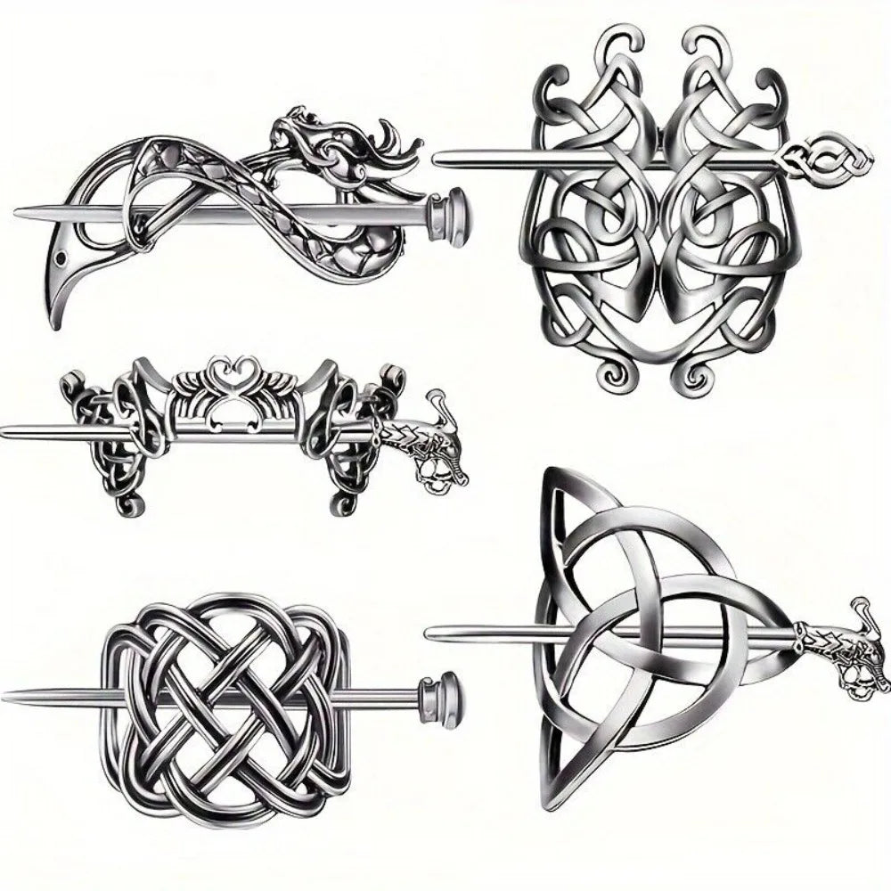 5 Pcs Viking Celtic Long Hair Clips - Vintage Silver Celtic Knot Hair Stick