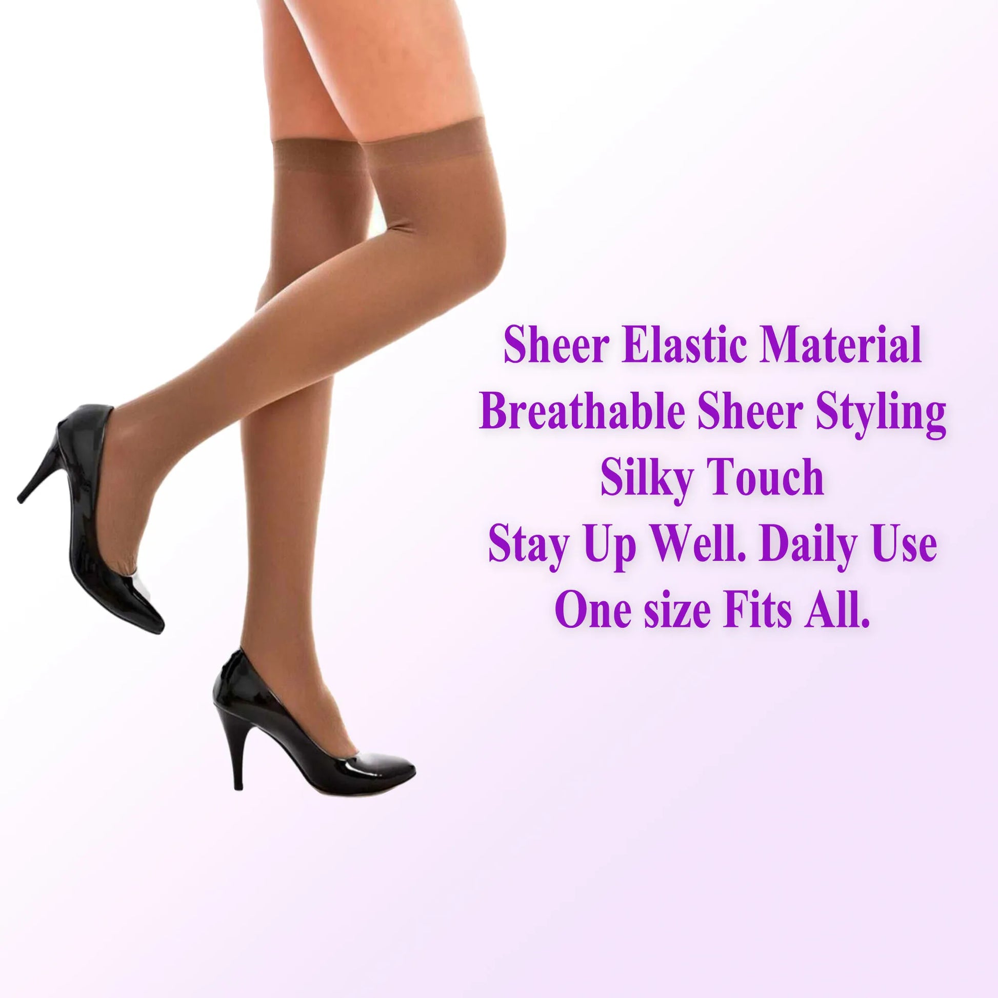 6-Pair Pack of Sheer Thigh-High Stockings – Elegant & Timeless! Enhance your wardrobe with this 6-pair pack of sheer thigh-high stockings, designed for a sleek and sophisticated look. Crafted from lightweight and breathable nylon, these stockings offer a smooth, elegant finish perfect for everyday wear or special occasions.