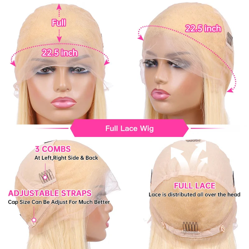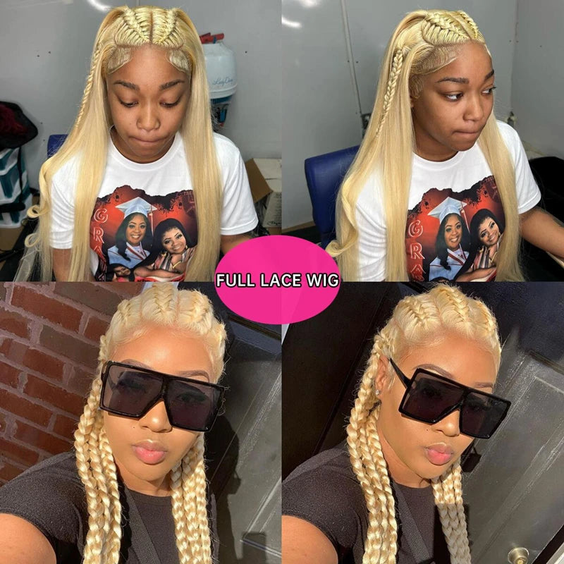 613 Full Lace Wig Straight Blonde 360 Full Lace Human Hair Wig Brazilian Transparent 13x6 Lace Front