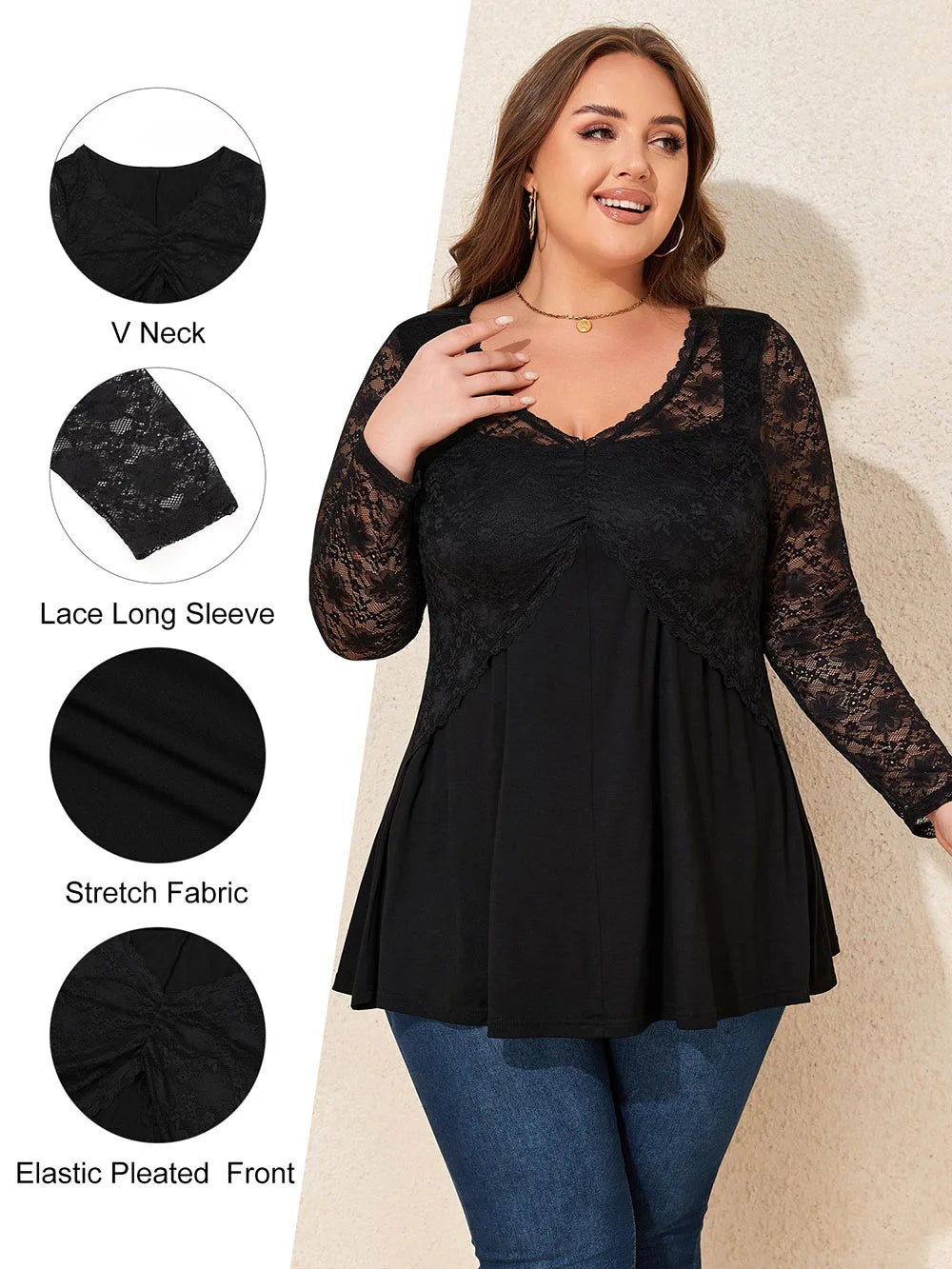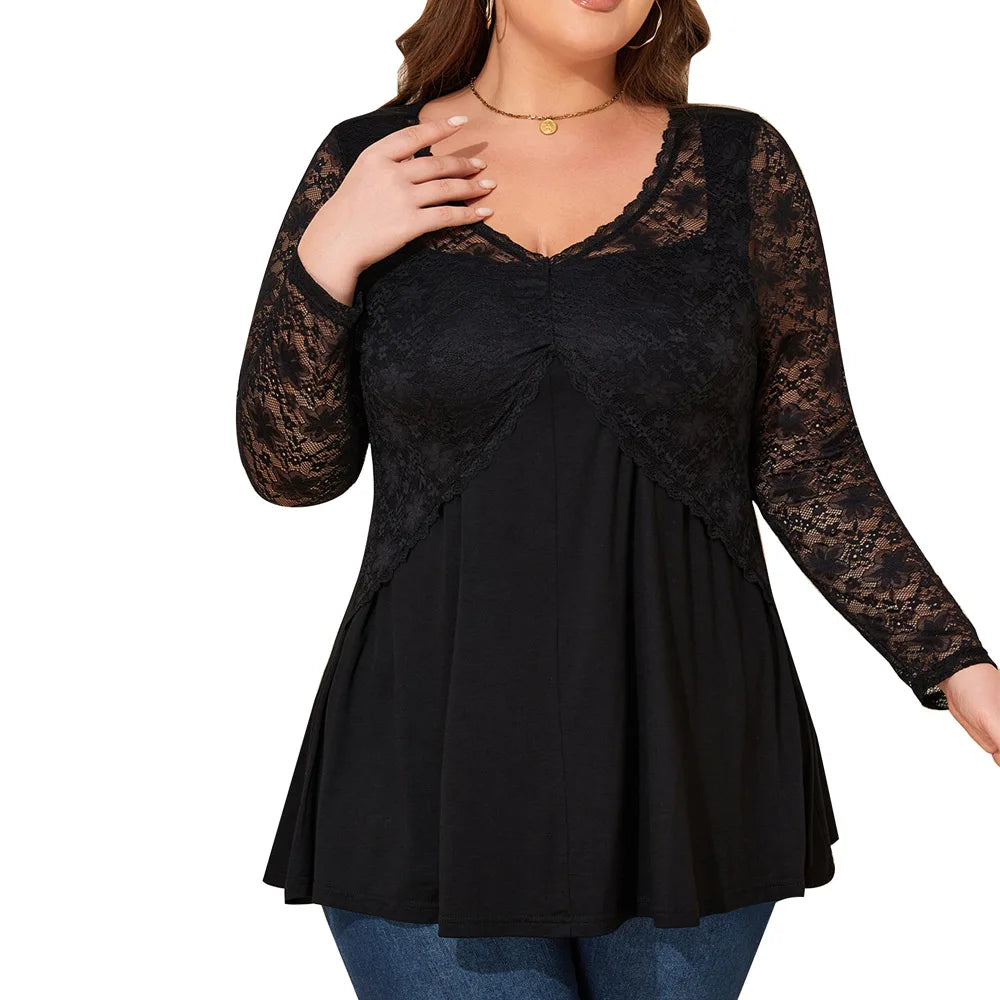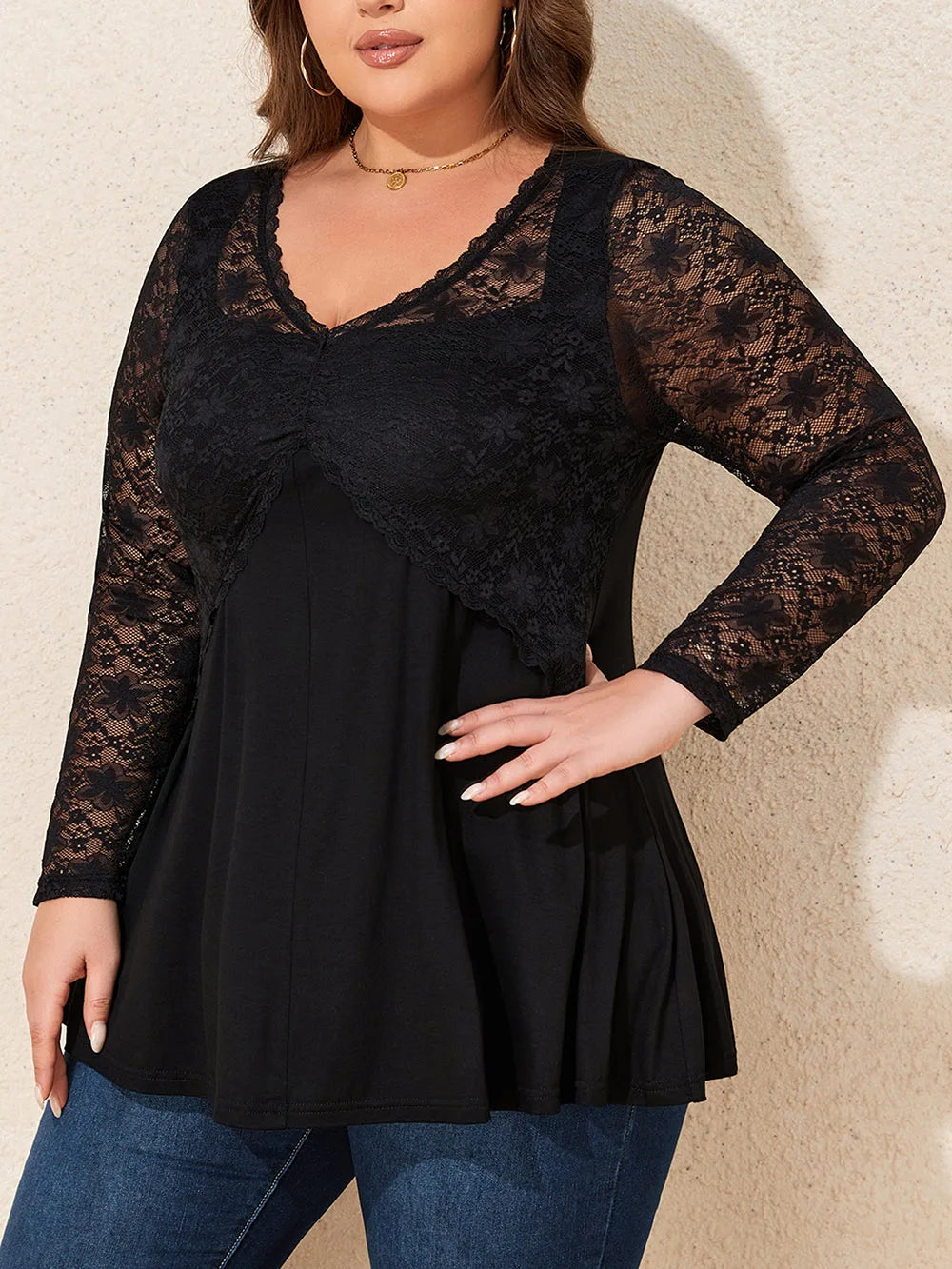 This regular-length top features a stylish V-neck design with delicate lace decoration for an elegant and feminine touch. Crafted from a comfortable jersey fabric, it offers slight stretch for a more flexible fit. The full sleeves with a regular sleeve style make it suitable for cooler weather or layered outfits. Made from polyester, it is both durable and easy to care for. The solid color ensures versatility, allowing you to pair it with various bottoms, from skirts to trousers, for a chic, casual look. Perfect for everyday wear or a dressed-up casual event.