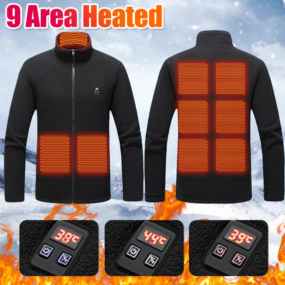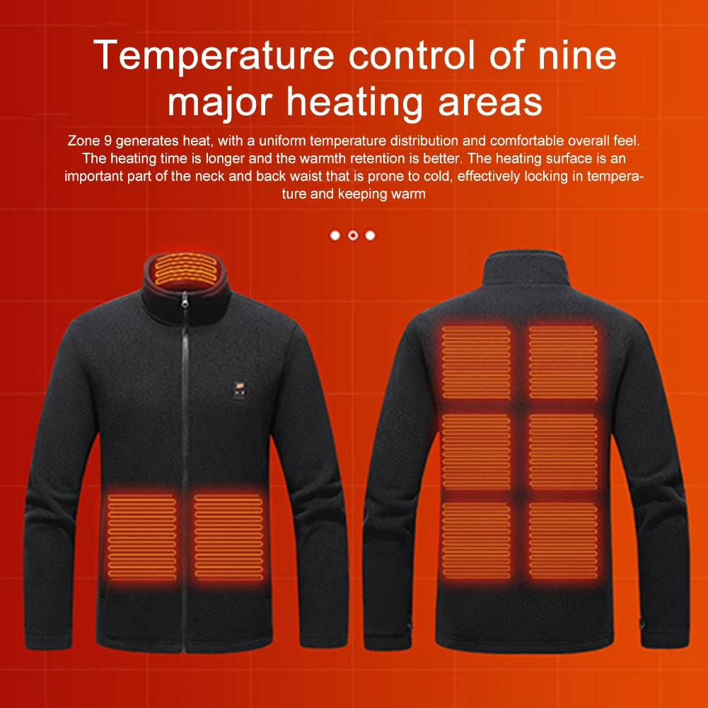 9 Heated Area Heated Insulated Jackets USB Charging Heated Zip Up Coat 3 Gear Temperature Heating Jackets Coat for Hiking Skiing