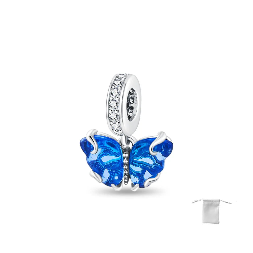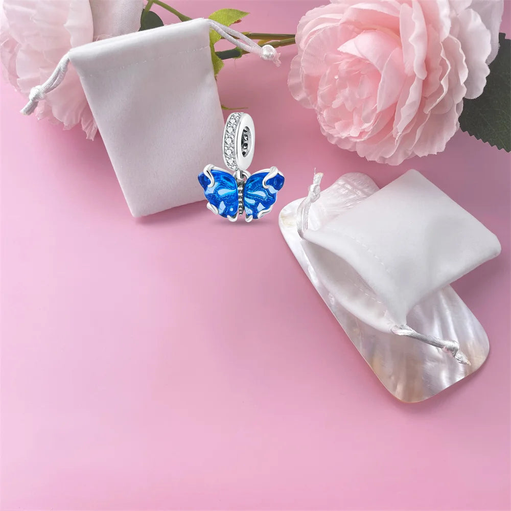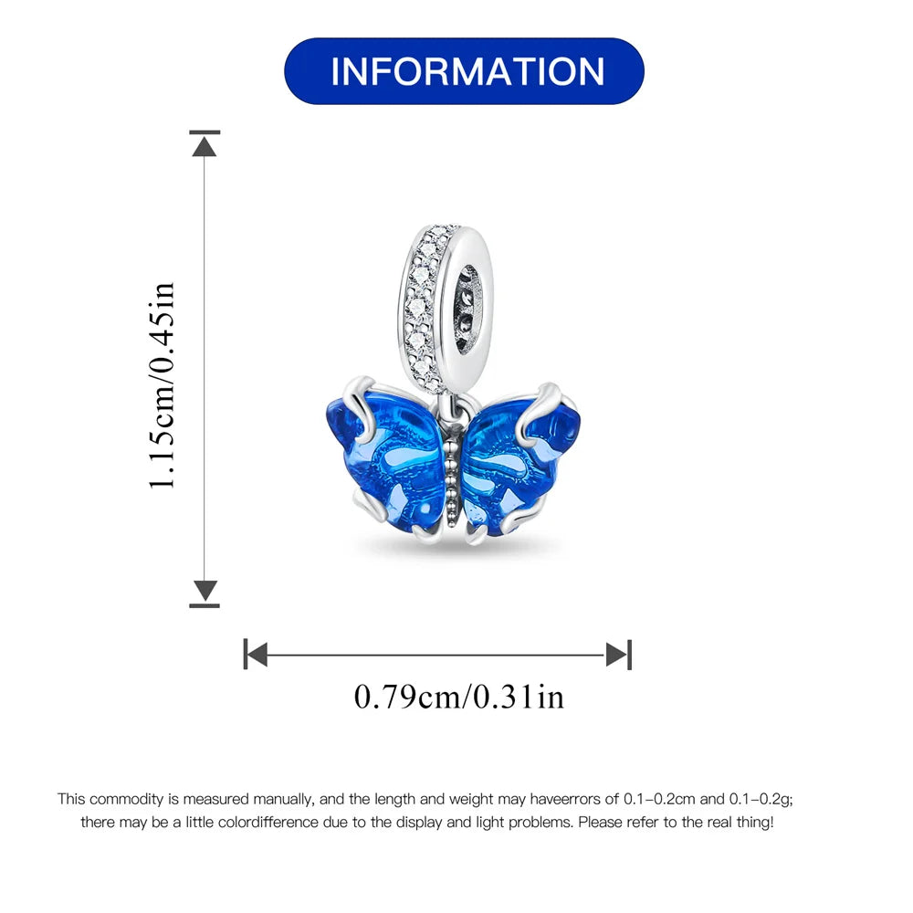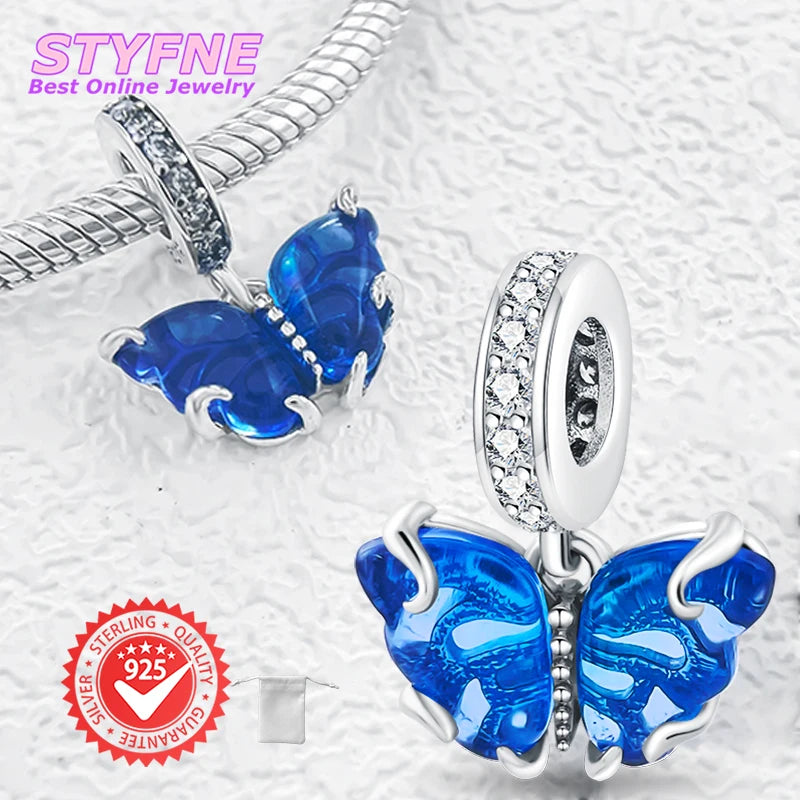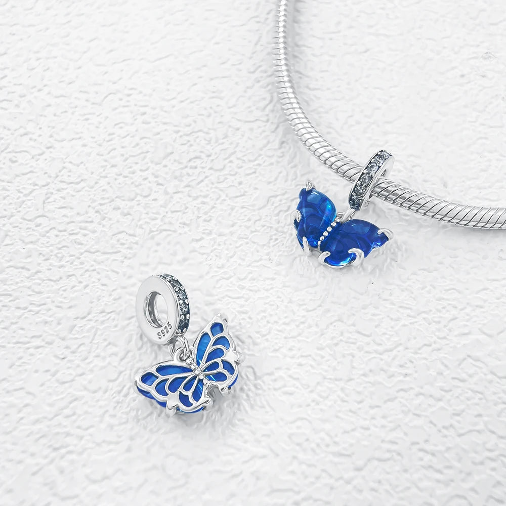 925 Sterling Silver Blue Ocean Butterfly Pendant Fit Pandora Original Bracelet Charms