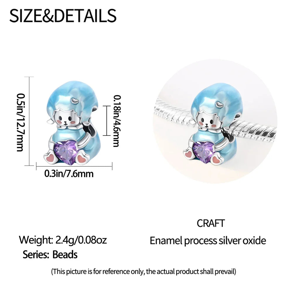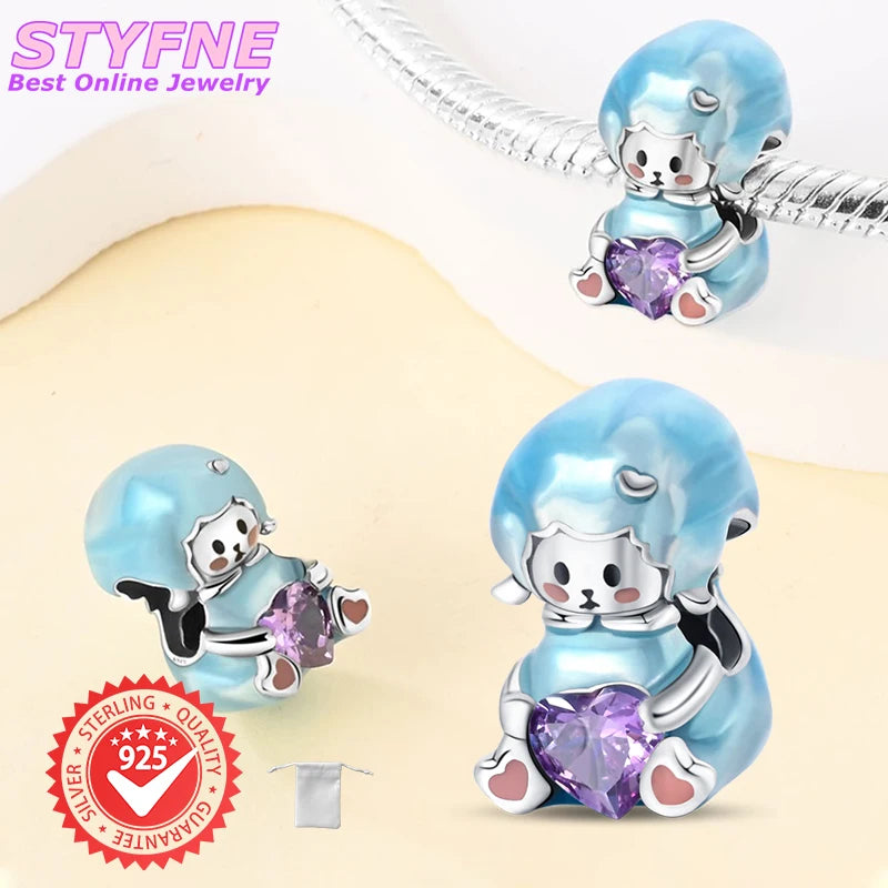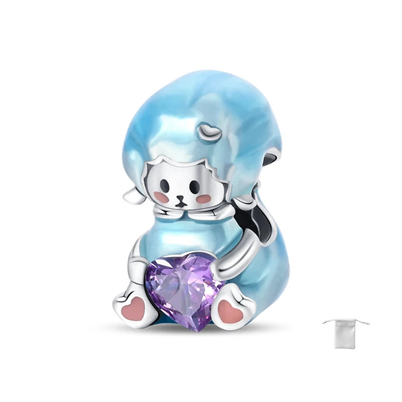 925 Sterling Silver Cartoon Cute Lamb Heart Shaped Beads Fit Pandora Original Bracelet Charms