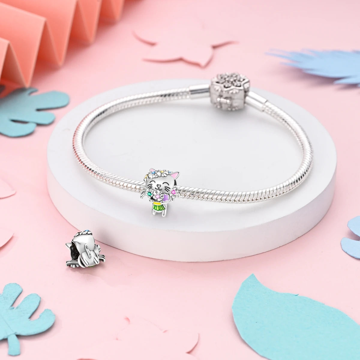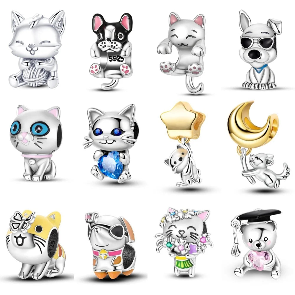 925 Sterling Silver Cute Pet Cat Dog Animal Beads Bracelet Charms