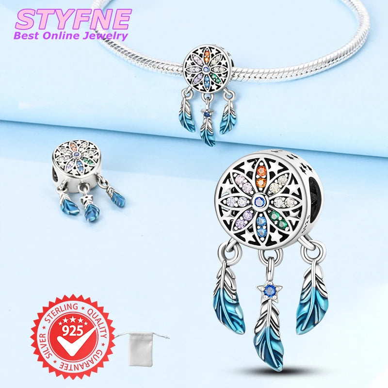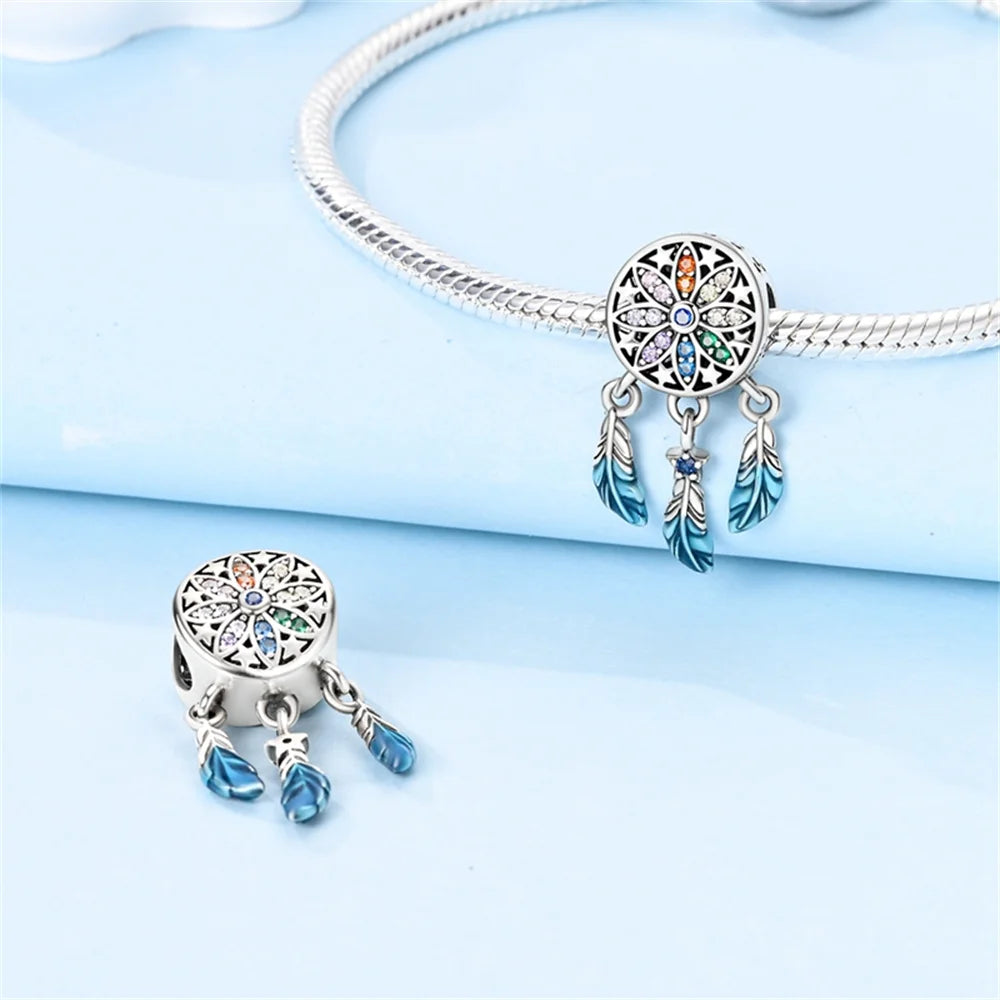 925 Sterling Silver Starry Night Dream Catcher Beads Fit Pandora Original Bracelet Charms