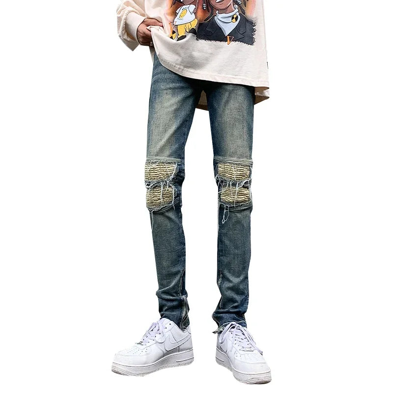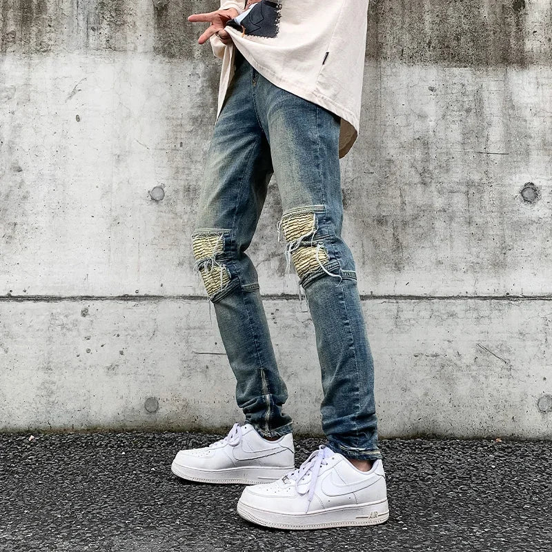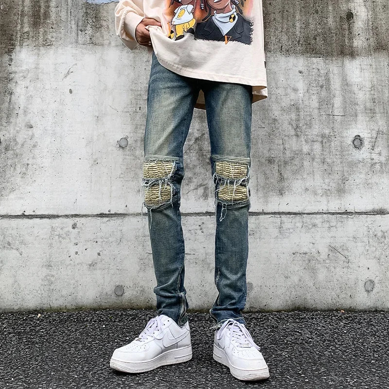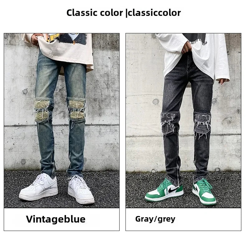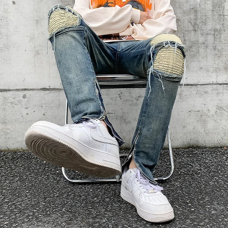 American Vibe style high street tide side zipper straight jeans men's and women's European and American hip hop slim-fitting trousers