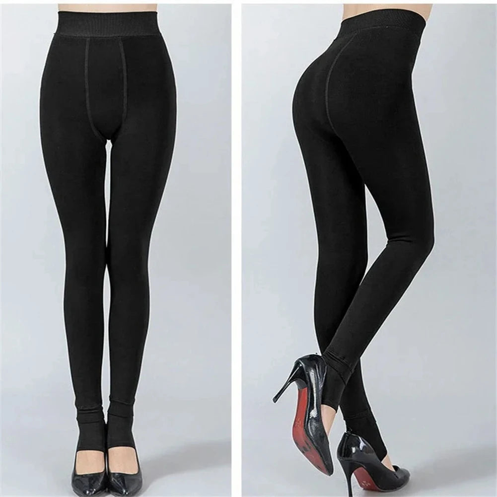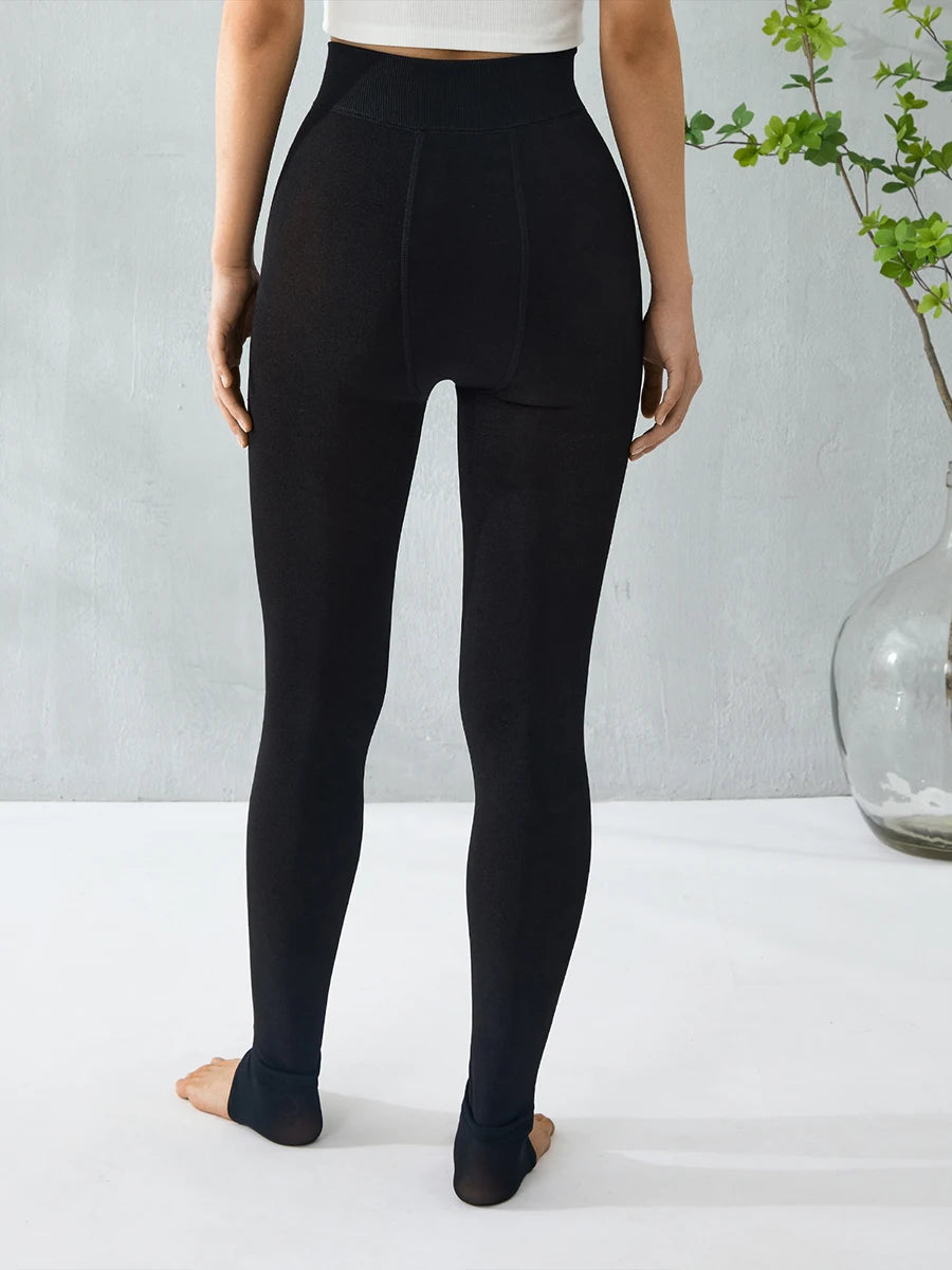 Autumn Winter Thick Warm Fleece Lined Leggings Solid Color High Waist Stretchy Thermal Pants Skinny Tights Pantyhose