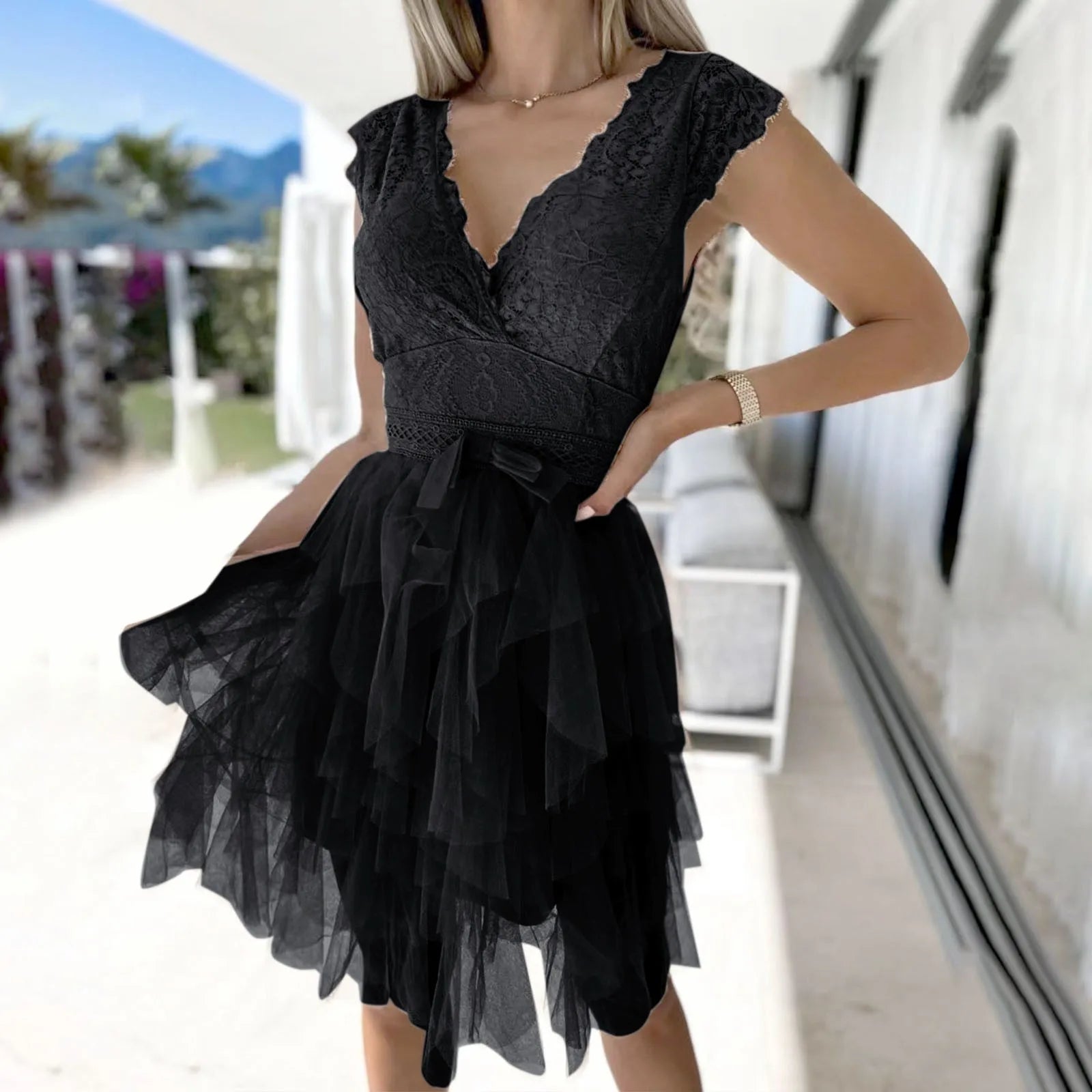 Backless Lace Dress Women's Sexy Bow Lace-up Mesh Sleeveless Cocktail Dresses Summer Prom Dresses