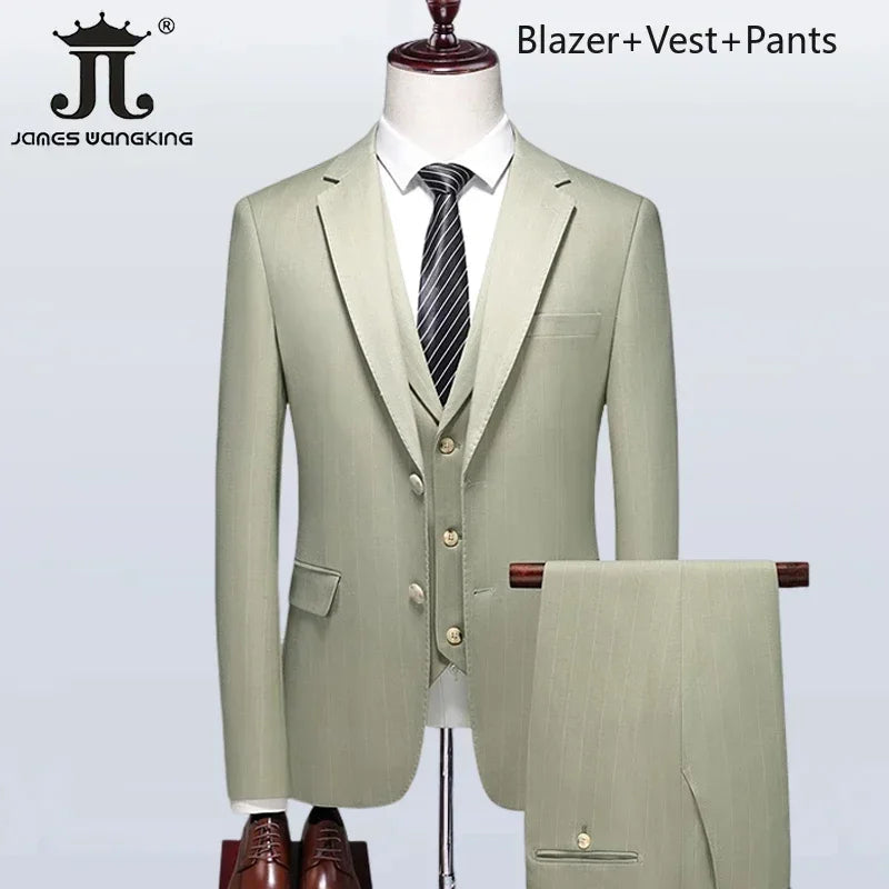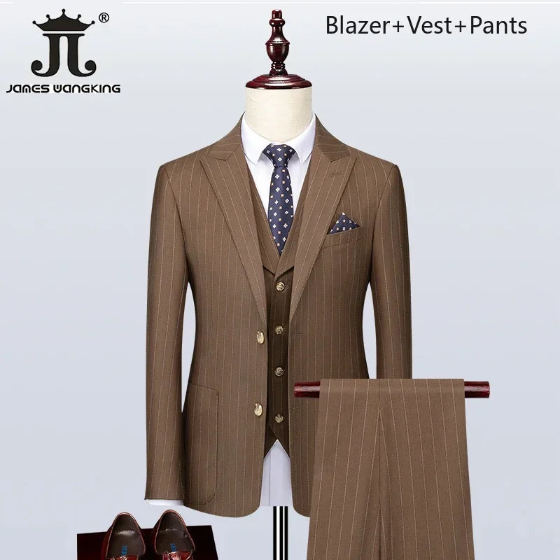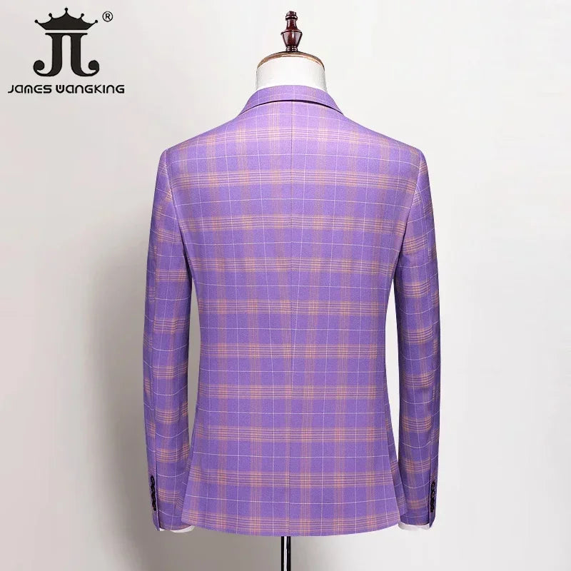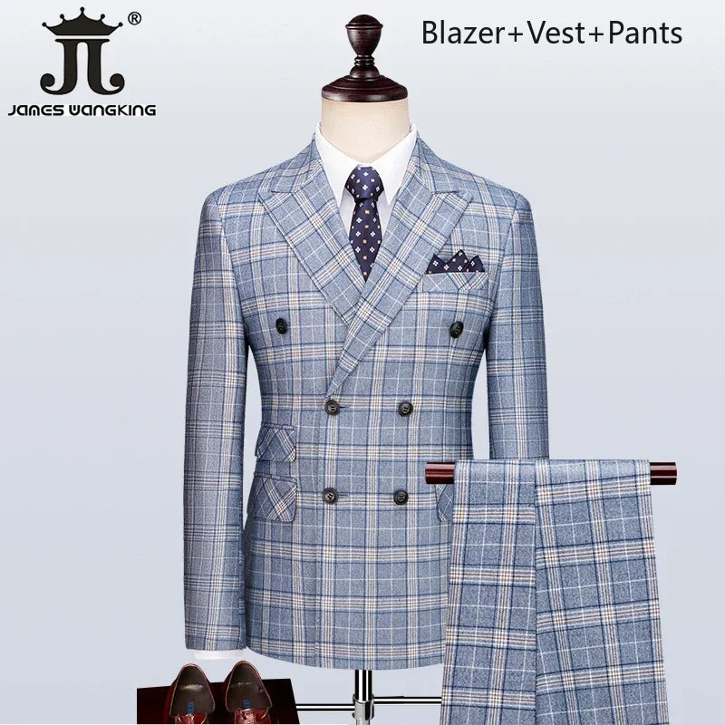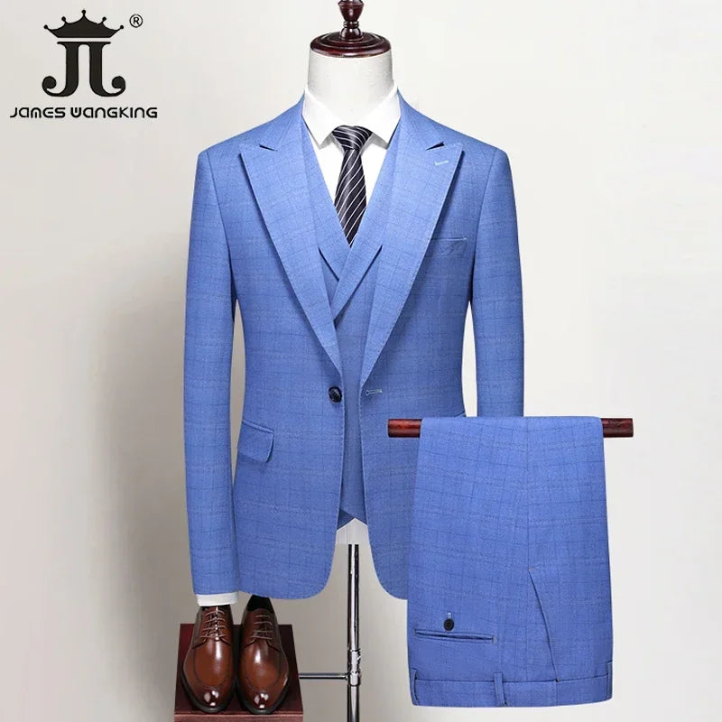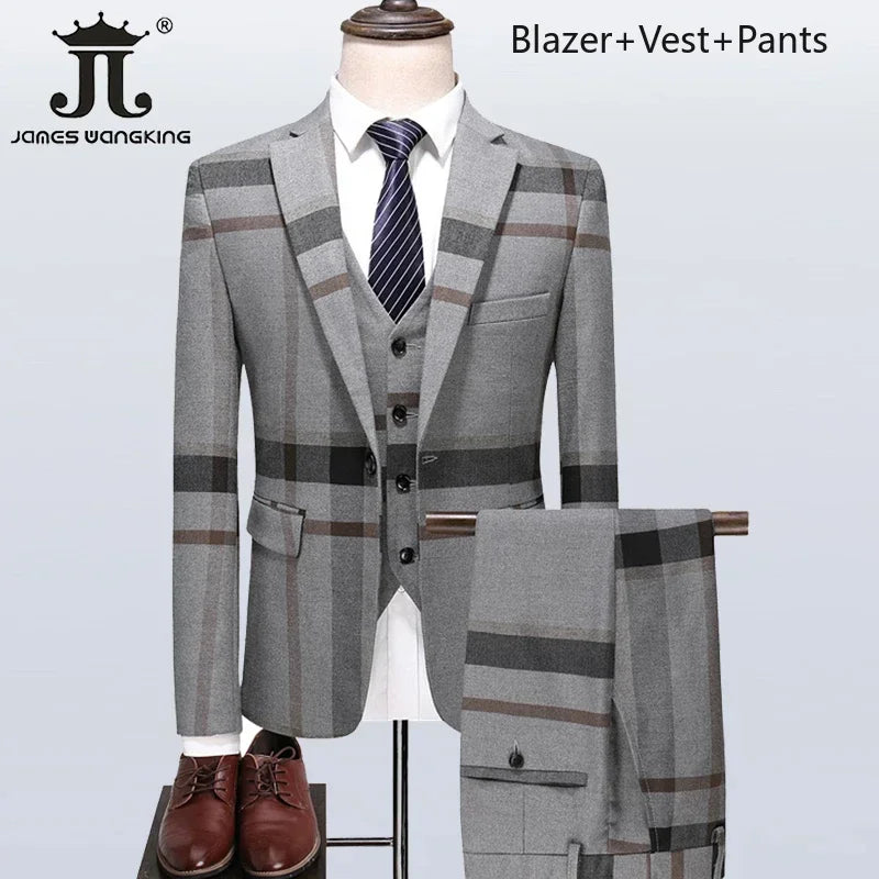 ( Blazer + Vest + Pants ) Boutique British Style Men's Suit Plaid Dress Business Casual Formal Suits 3Pcs Set