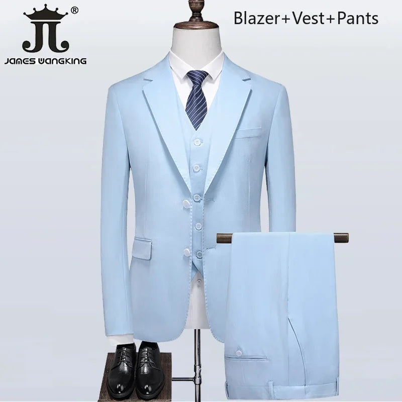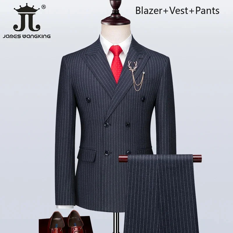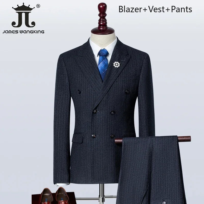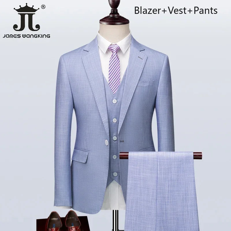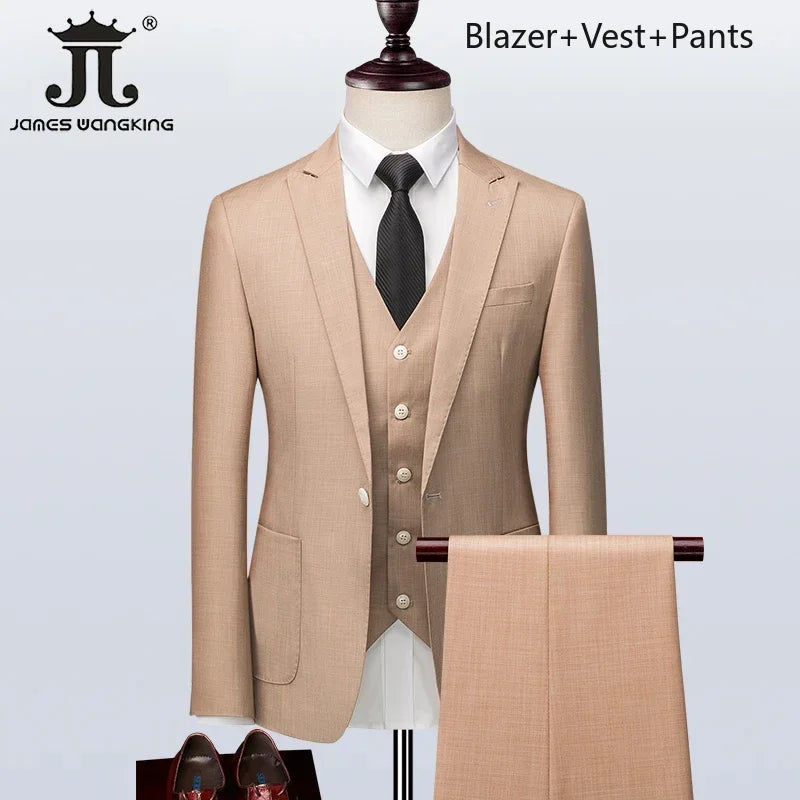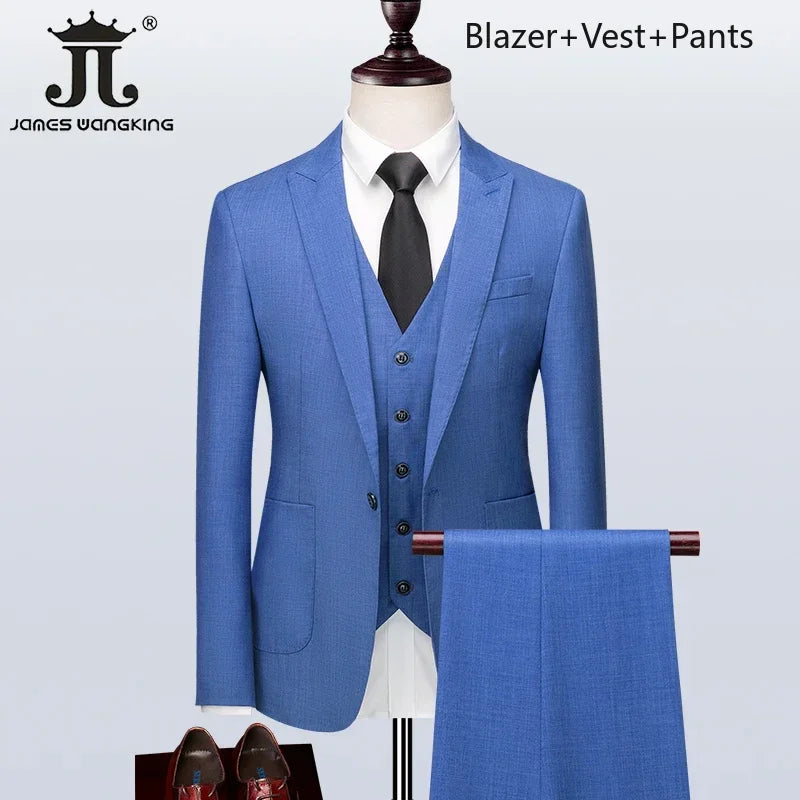( Blazer + Vest + Pants ) Boutique British Style Men's Suit Plaid Dress Business Casual Formal Suits 3Pcs Set