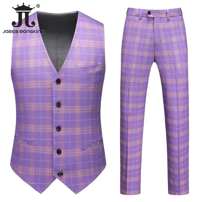 Make a standout impression with this boutique British-style men's three-piece suit, featuring a plaid design that blends classic charm with modern elegance. The set includes a double-breasted blazer, matching vest, and flat-front pants, all crafted from a premium blend of polyester and viscose for a refined fit and feel. With a regular-length cut and zipper fly closure, this stylish ensemble is perfect for parties, formal gatherings, or any dress-up occasion where sophistication is key.
