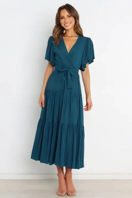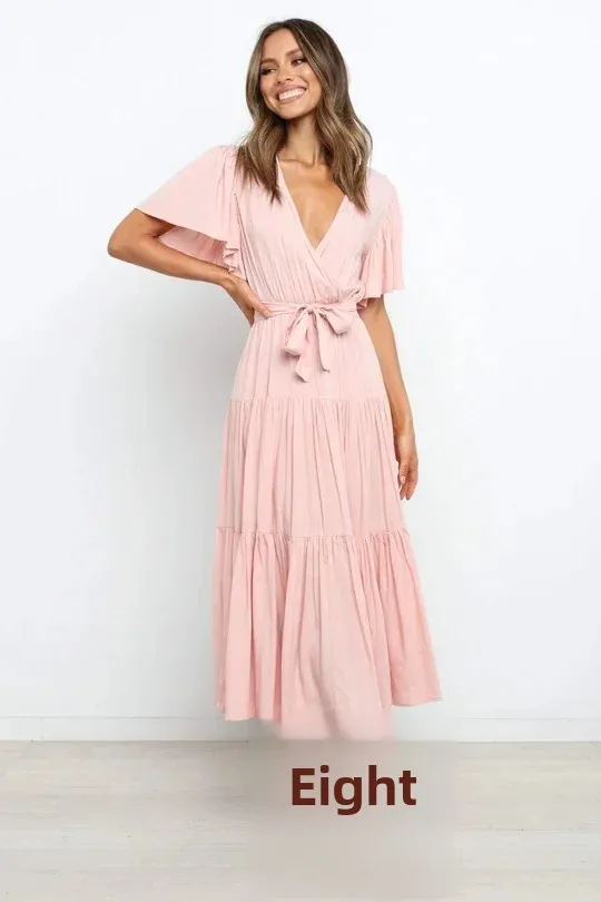 • Versatile Design : The tight waist and short sleeve design make this dress versatile for various occasions, whether it's a casual day out or a more formal event.