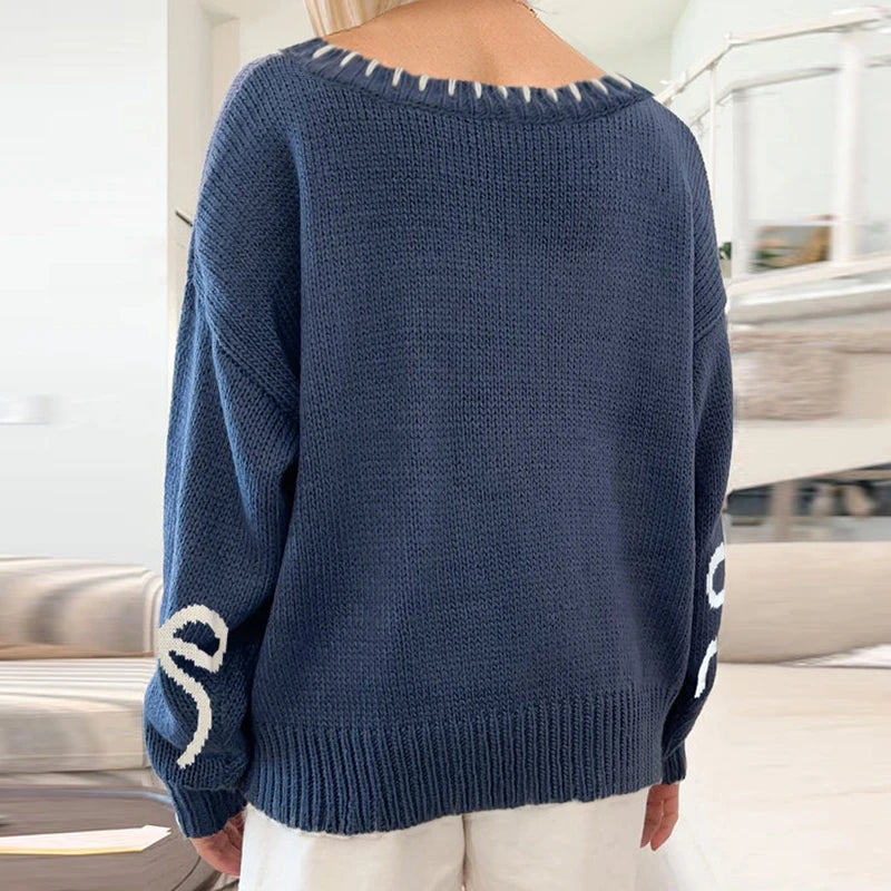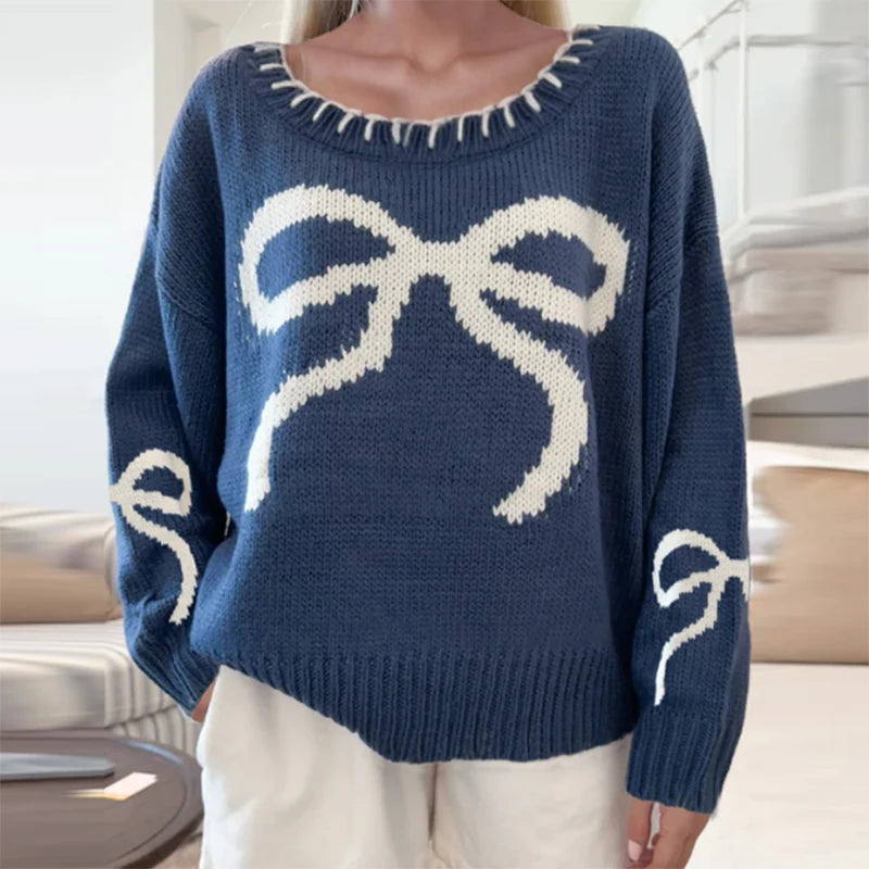 Bowknot Pattern Pullovers Women Autumn Long Sleeve Vintage Knitted Sweaters
