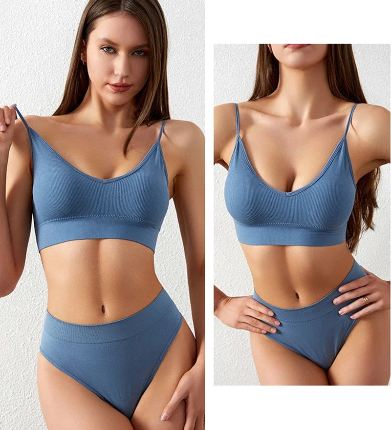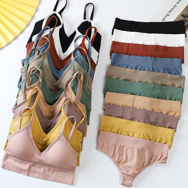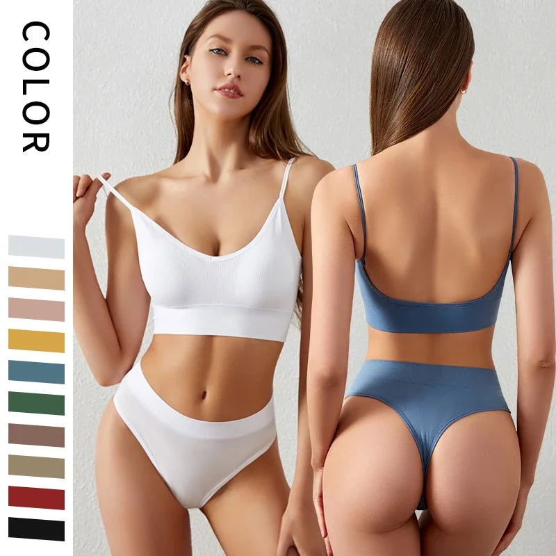 Bra and Panties Set Push Up Sports Bra Set Seamless Active Bra Thong Lingerie Set Fitness Crop Top