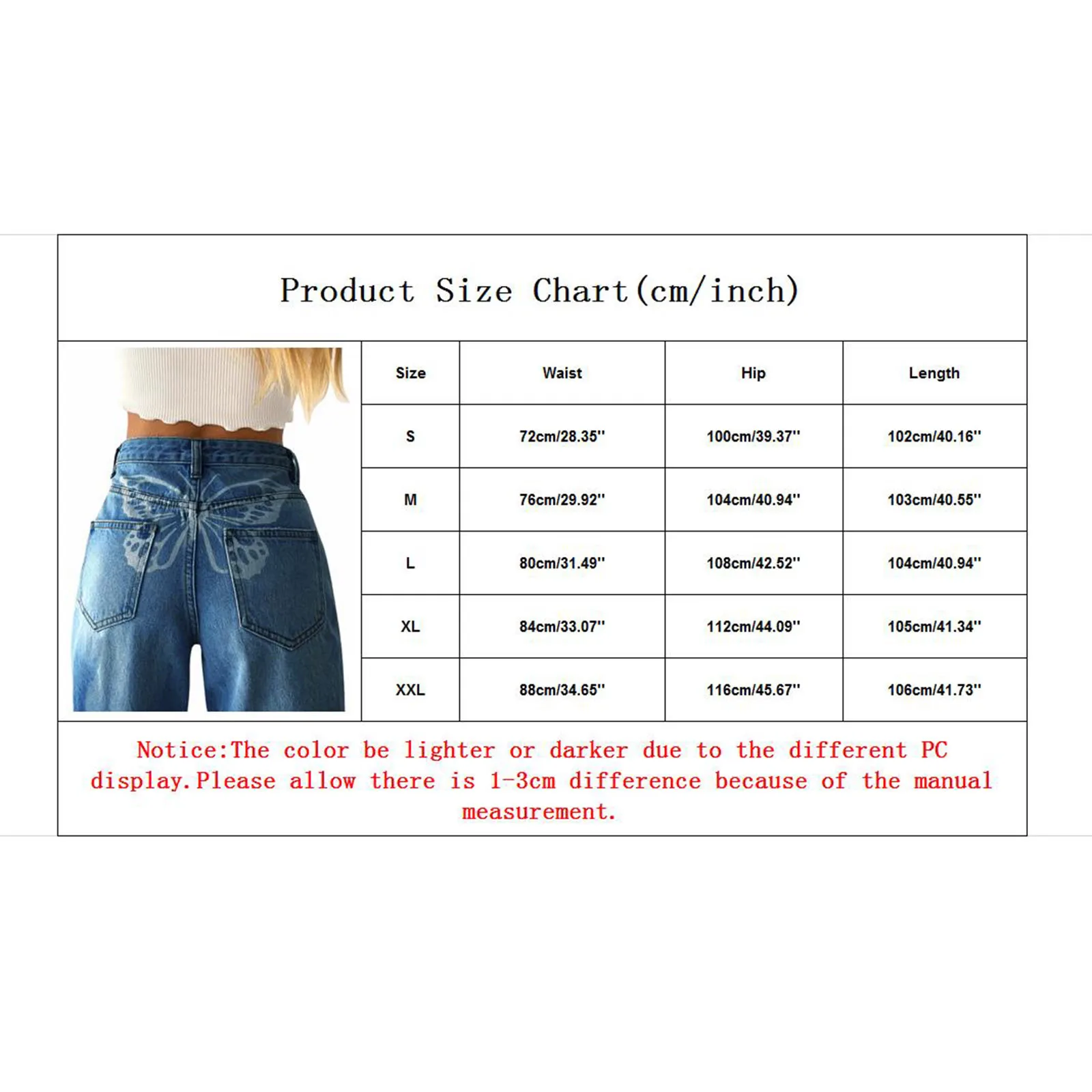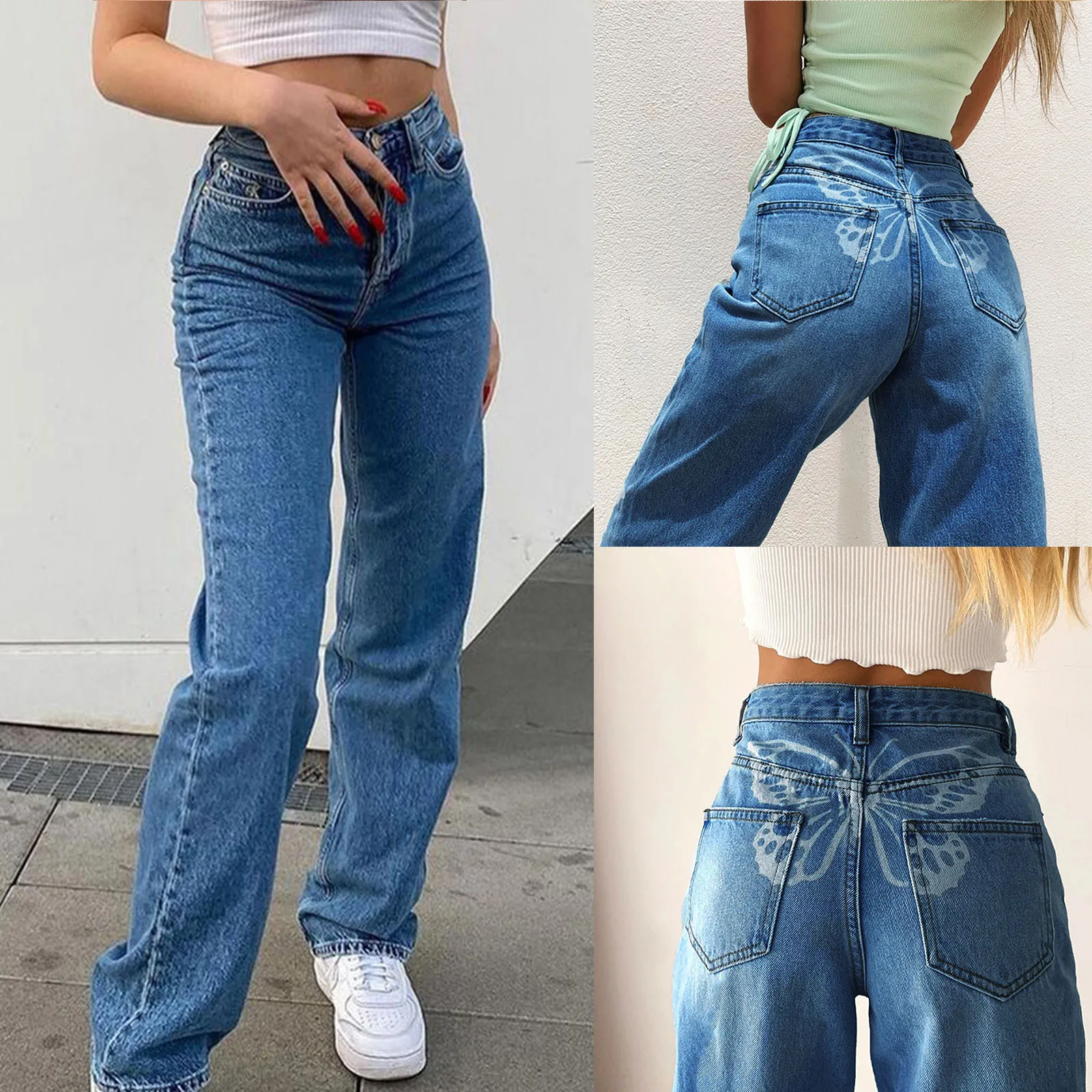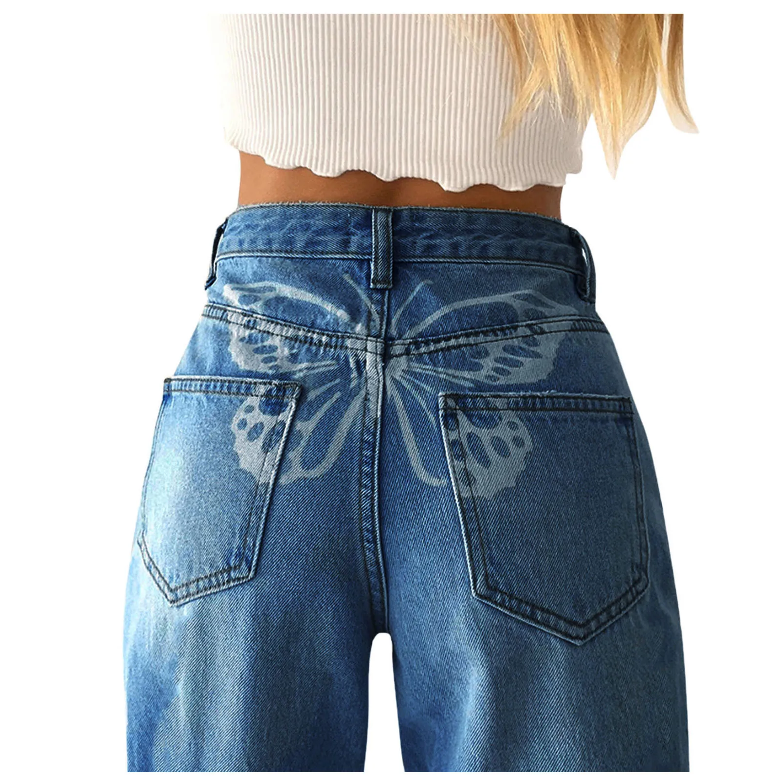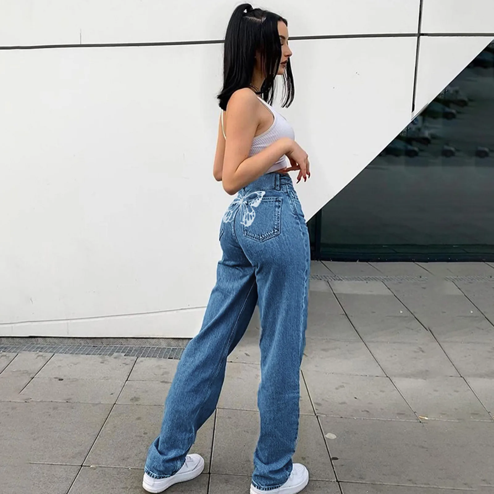 Butterfly Jeans Pants Hip Hop Streetwear Women's Fashion High Waist Wide Leg Pants Female Denim Trousers